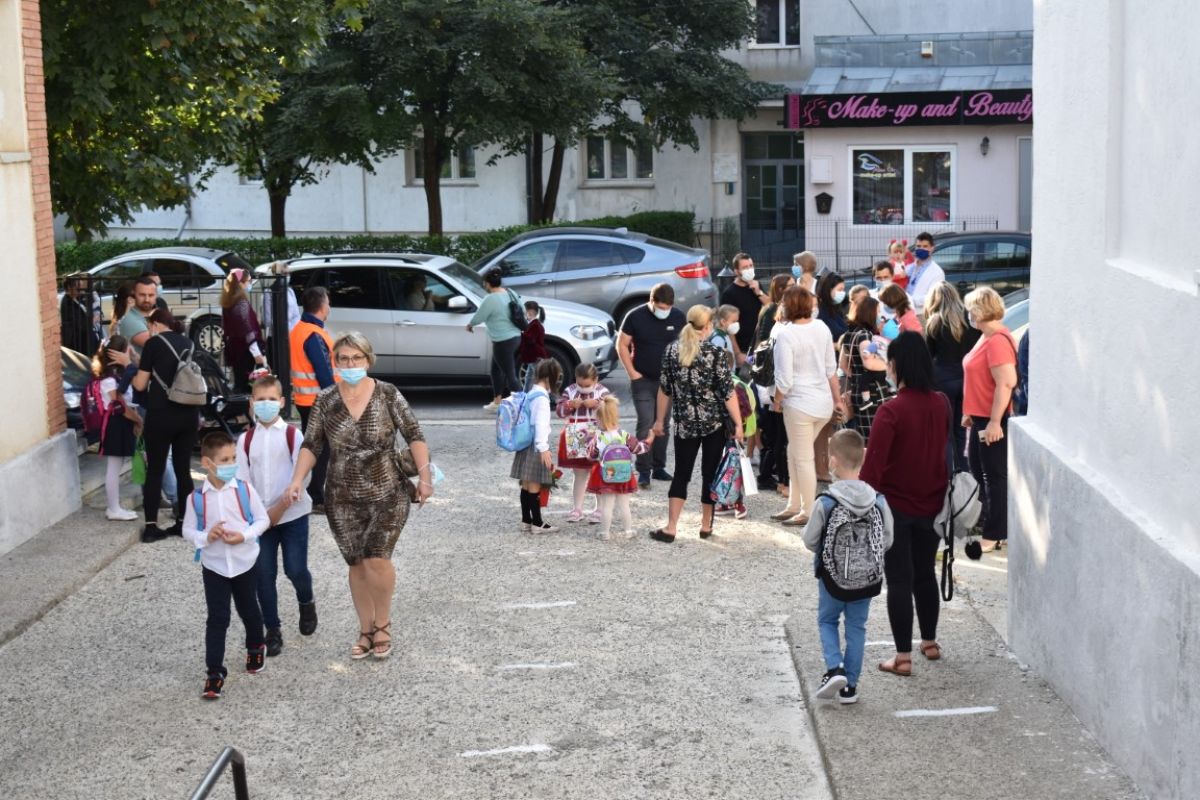 Unii copii se aflau deja în bănci aproape de ora 9:00 în dimineața zilei de 14 septembrie. Câte unul aliniați și cu măștile pe fețele cu ochi curioși, ascultau primele cuvinte ale învățătoarei. Alăturat, alte săli erau încă goale însă doamnele roiau printre bănci pentru a face ultimele pregătiri.