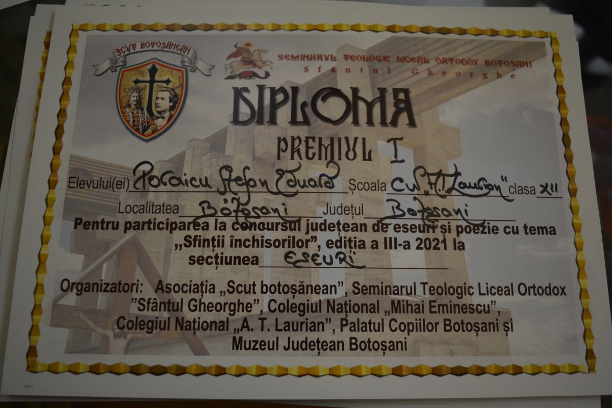 Premiul I: Lucian-Mihai Pintilie – Seminarul Teologic ”Sf. Gheorghe” Botoșani