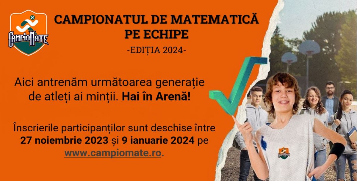 Elevii de gimnaziu se pot înscrie până pe 9 ianuarie în CampioMATE – Campionatul de matematică pe echipe, ediția 2024. Programul inițiat de Asociația Visuri Îndrăznețe este inspirat din sport și video-gaming și se adresează elevilor de gimnaziu, ajutându-i, prin joc, să-și îmbunătățească nivelul la matematică pentru rezultate mai bune la școală, examene, dar și în viață. Participarea este gratuită, iar înscrierile se pot face pe site-ul www.campiomate.ro.