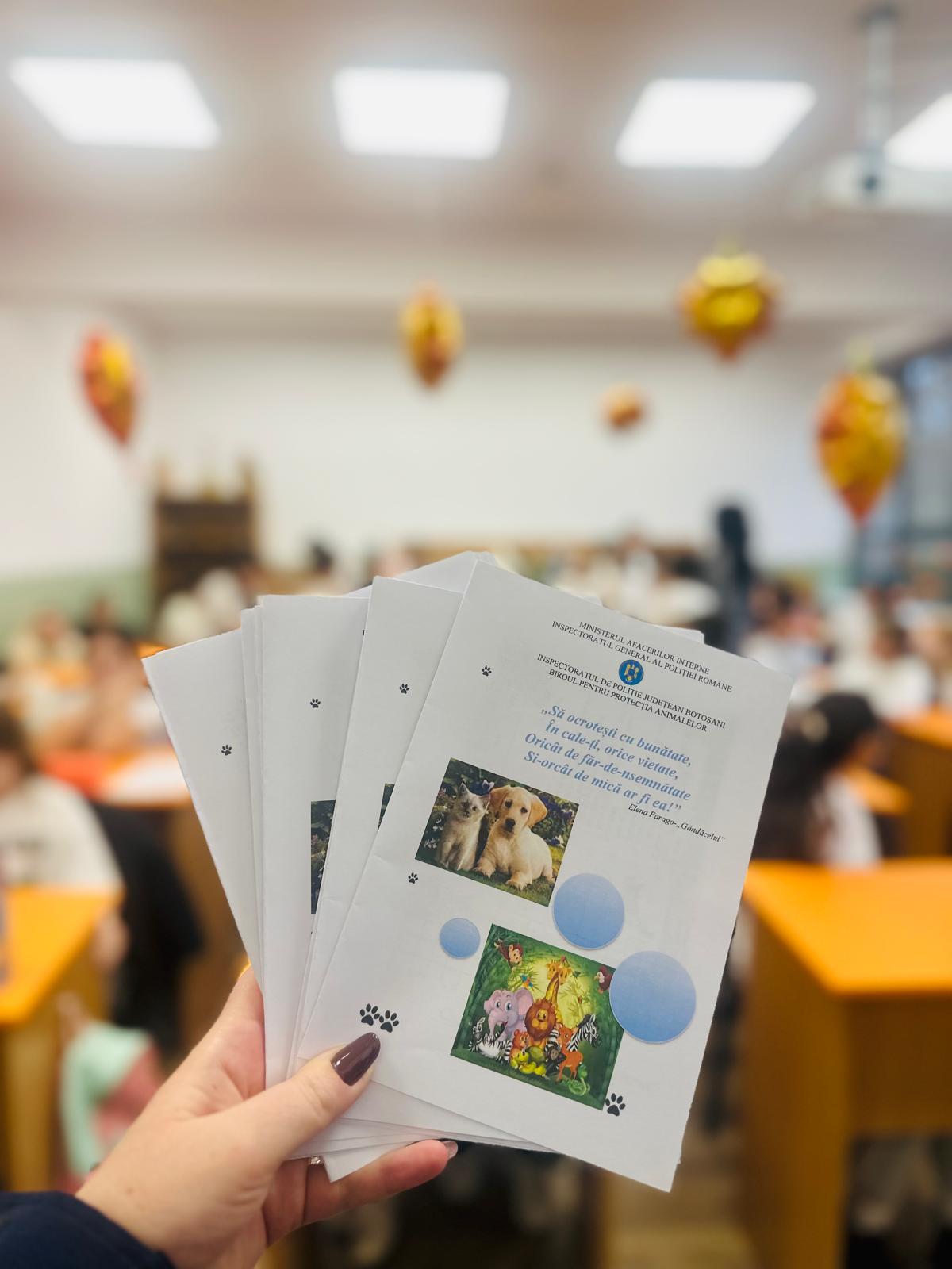 Pe 6 noiembrie 2025, polițiștii din cadrul Biroului pentru Protecția Animalelor au desfășurat activități informativ preventive cu elevii Școlii Gimnaziale nr. 7 din municipiul Botoșani.