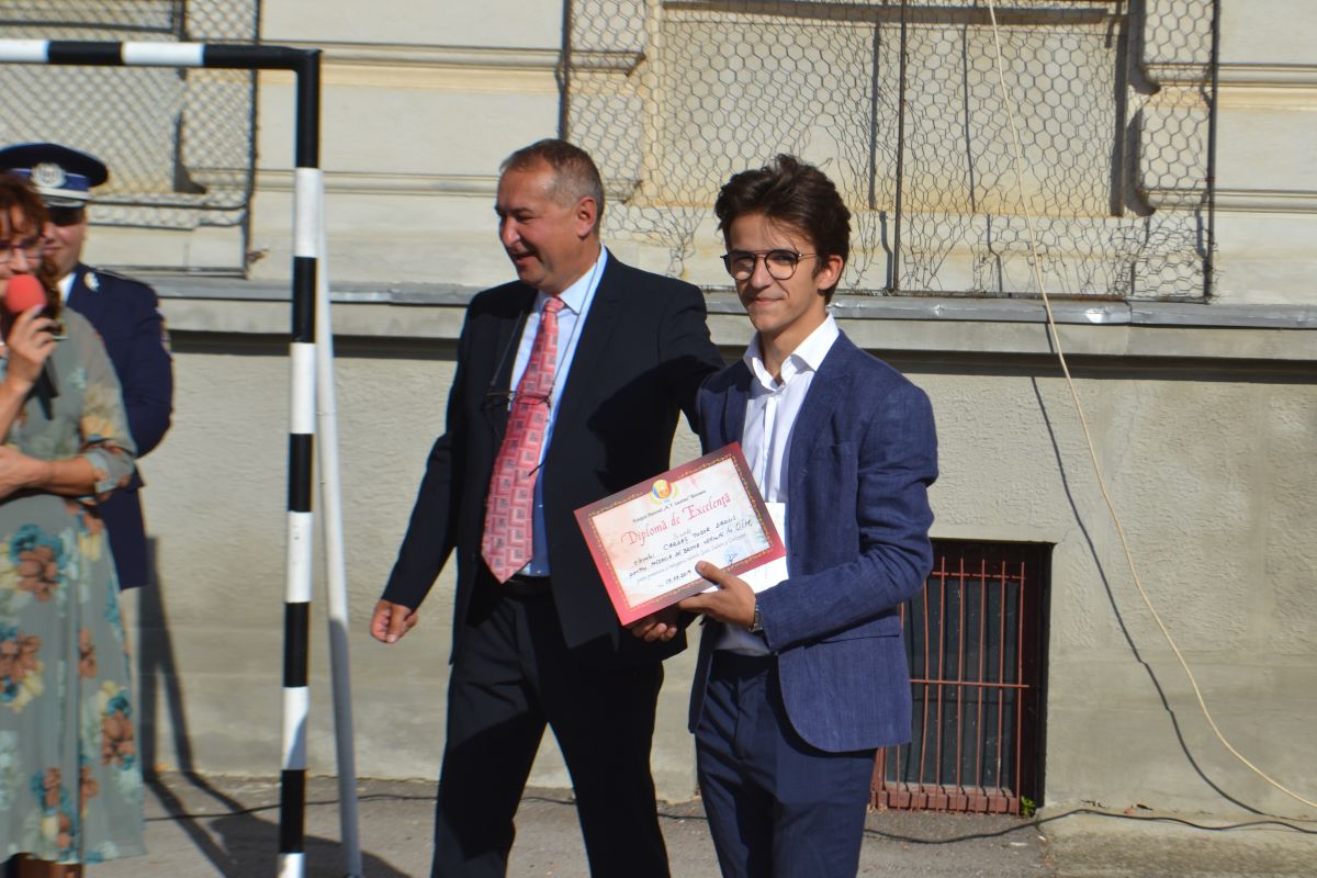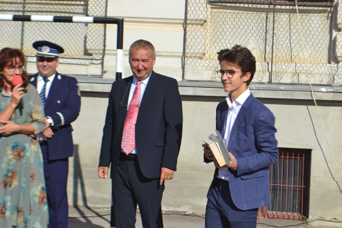 Conducerea liceului i-a oferit o diplomă de excelență și niște cărți pentru rezultatul obținut la Olimpiada Internațională de Matematică.