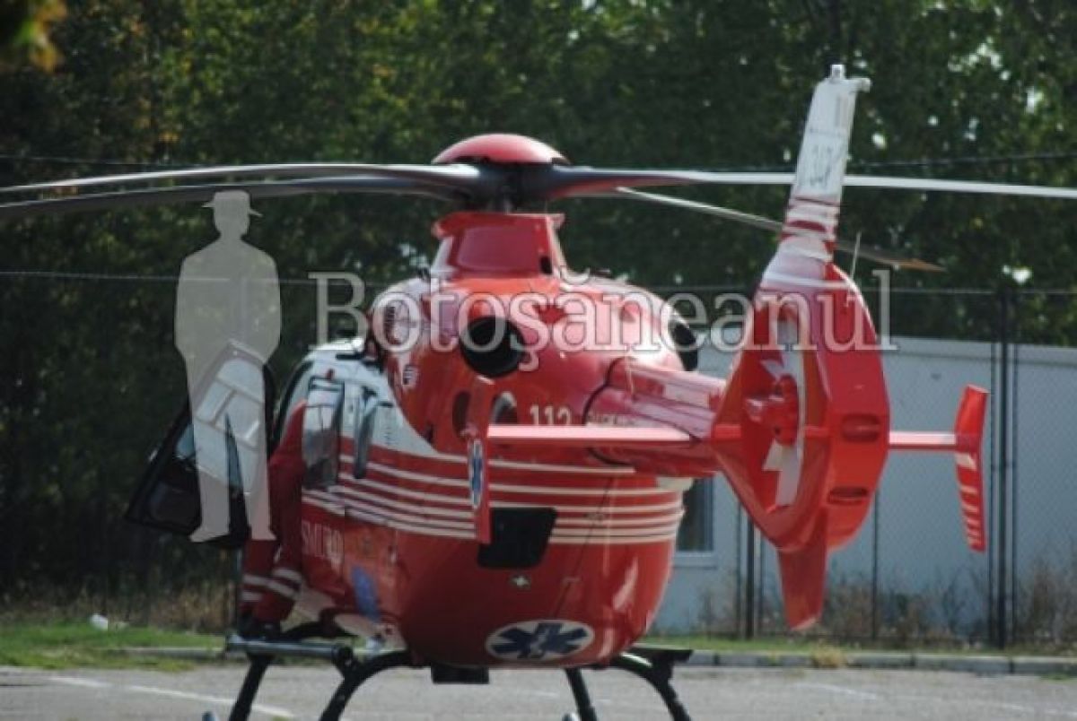 Medici din cadrul Spitalului Județean Mavromati au solicitat miercuri, aparatul medical de zbor pentru un bărbat în vârstă de 64 de ani, care a suferit un infarct miocardic. G.I., din comuna Mitoc, a fost transferat la o unitate spitalicească din Iași, acolo unde va fi supus unor investigații medicale amănunțite.