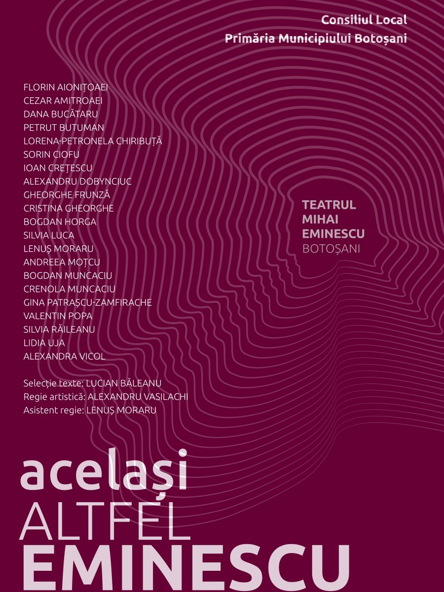 Teatrul "Mihai Eminescu" Botoșani prezintă sâmbătă, 15 ianuarie 2022, la ora 18.00, spectacolul "Același Altfel EMINESCU".