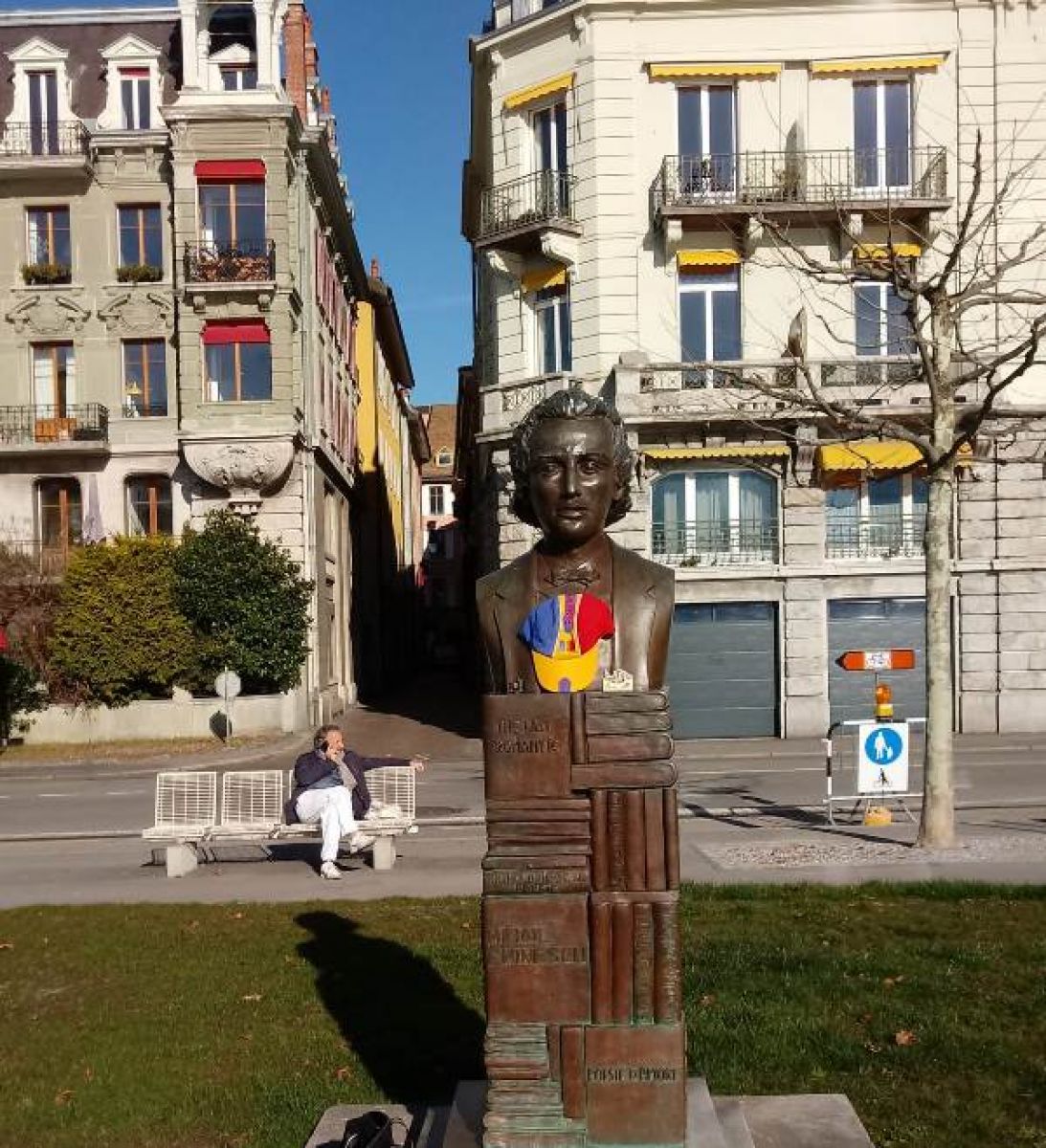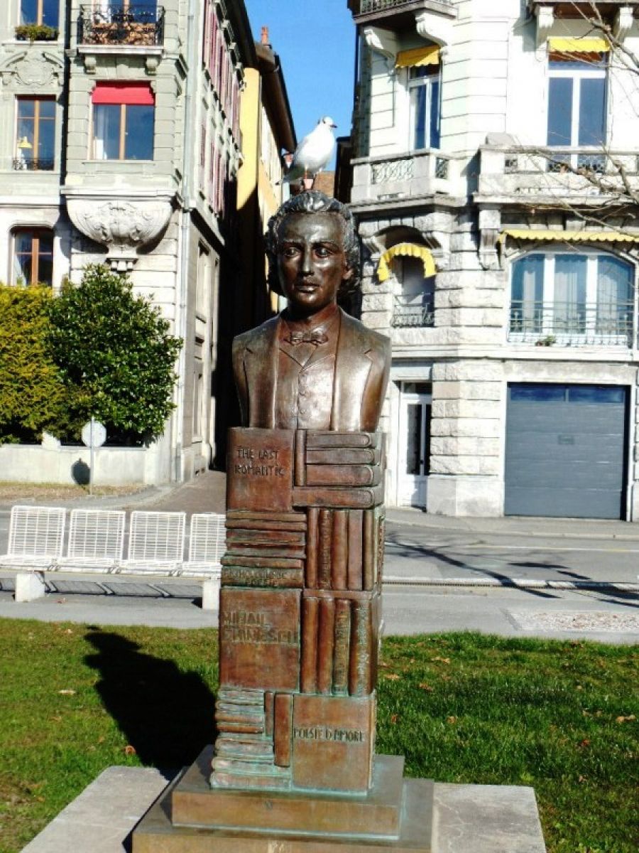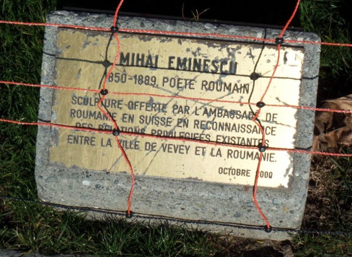 Sculptura a fost oferită de Ambasada României în Elveţia ca recunoaştere a relaţiilor privilegiate existente între oraşul Vevey şi România, altă legătură neexistând între poet și această țară (din studiile întreprinse până acum, cel puțin).