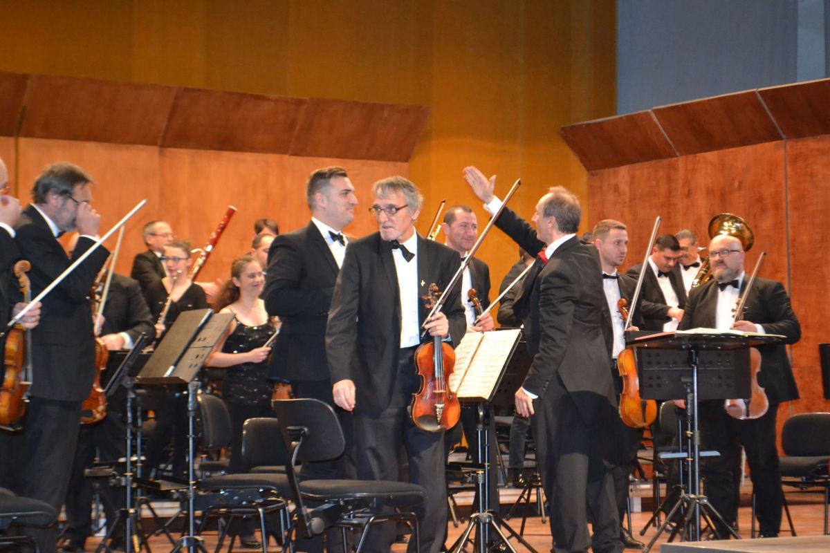 Elveţianul a ţinut un scurt discurs prin care a anunţat că, după 45 de ani de muzică, concert-maestrul Gheorghe Petrescu urcă pentru ultima oară pe scena Filarmonicii în această calitate, întrucât iese la pensie. Aplauzele au răsplătit, desigur că mult prea puţin, talentul şi profesionalismul unui om care a slujit arta botoşăneană aproape jumătate de secol.