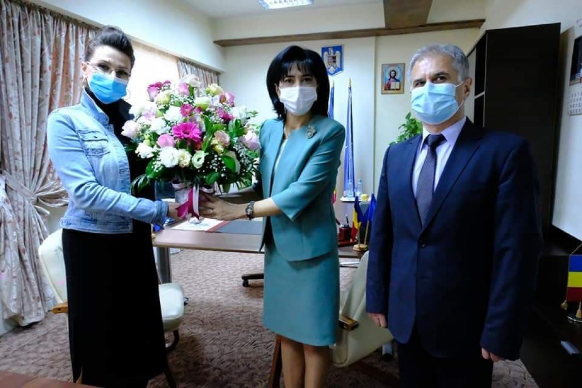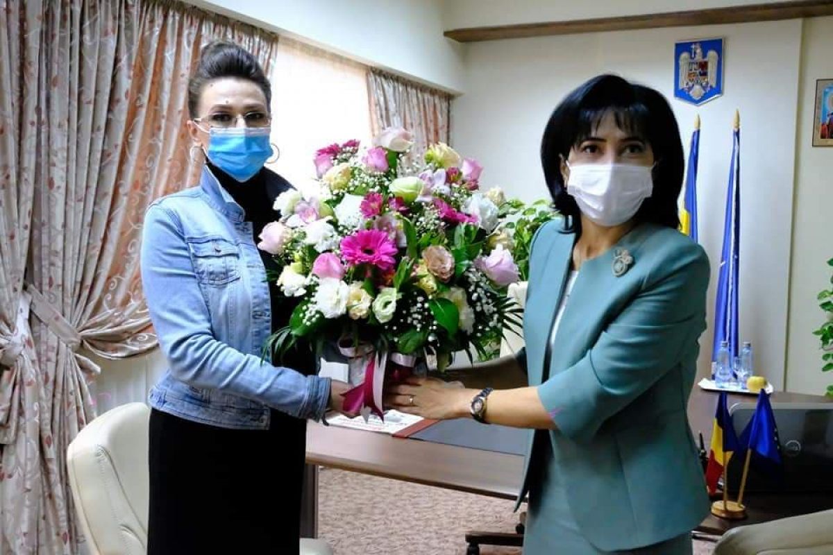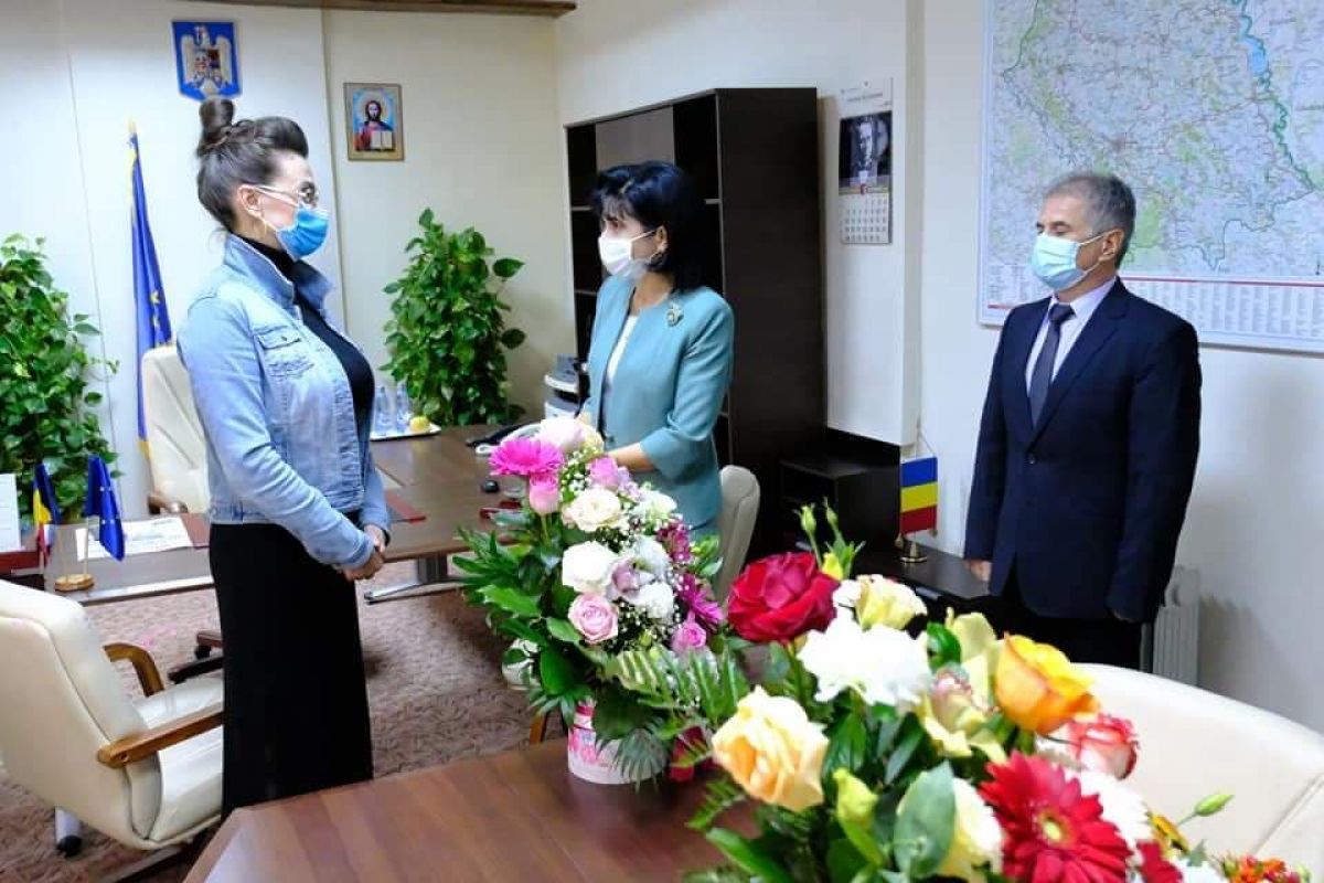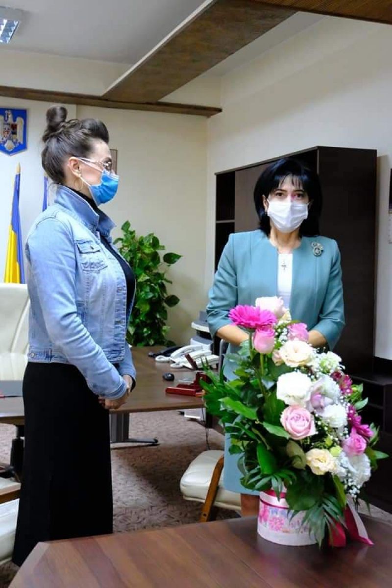 Un buchet de felicitări și mulțumiri din partea Doinei Federovici și a Consiliului Județean pentru Alina Huţu Călinescu, câștigătoarea Trofeului „Crizantema de Aur”, ediția a 53-a.