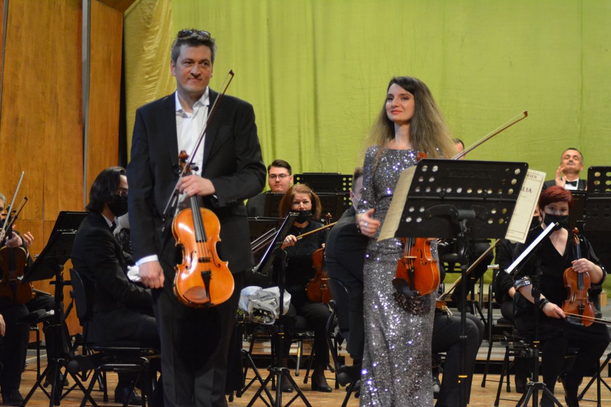 Melomanii botoșăneni au avut înainte doi soliști care s-au completat nu doar în interpretarea tehnică, ”de manual”, ci mai ales în suflul dinamic, într-un inefabil pe care publicul l-a tradus în emoție. Viola, prin acordul grav, a susținut frământările viorii, fără ca între cele două instrumente să existe vreun moment de dominare. Un dialog fermecător, cu mișcări de o frumusețe rafinată, având ca martor orchestra.