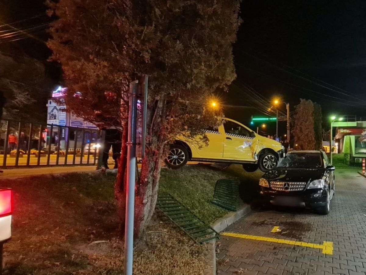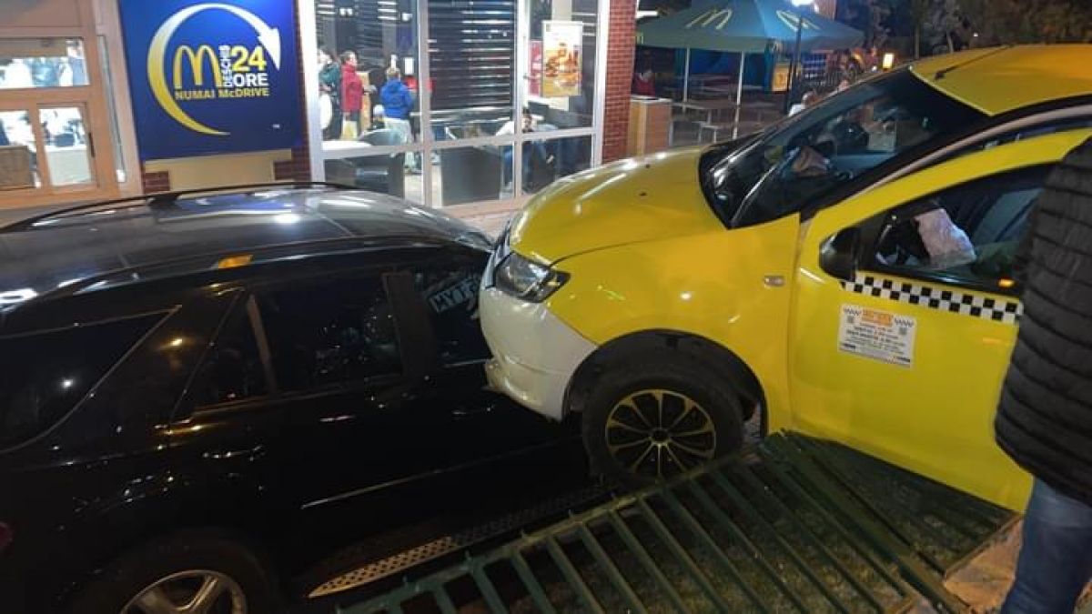 Totul s-a întâmplat după ce șoferul unui taxi a intrat cu viteză în intersecție și a lovit autoturismul unei șoferițe care tocmai ieșea de la McDonald's.