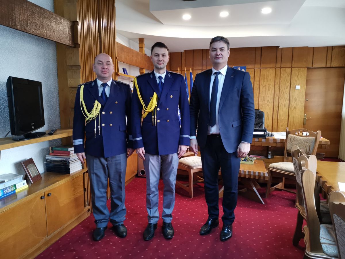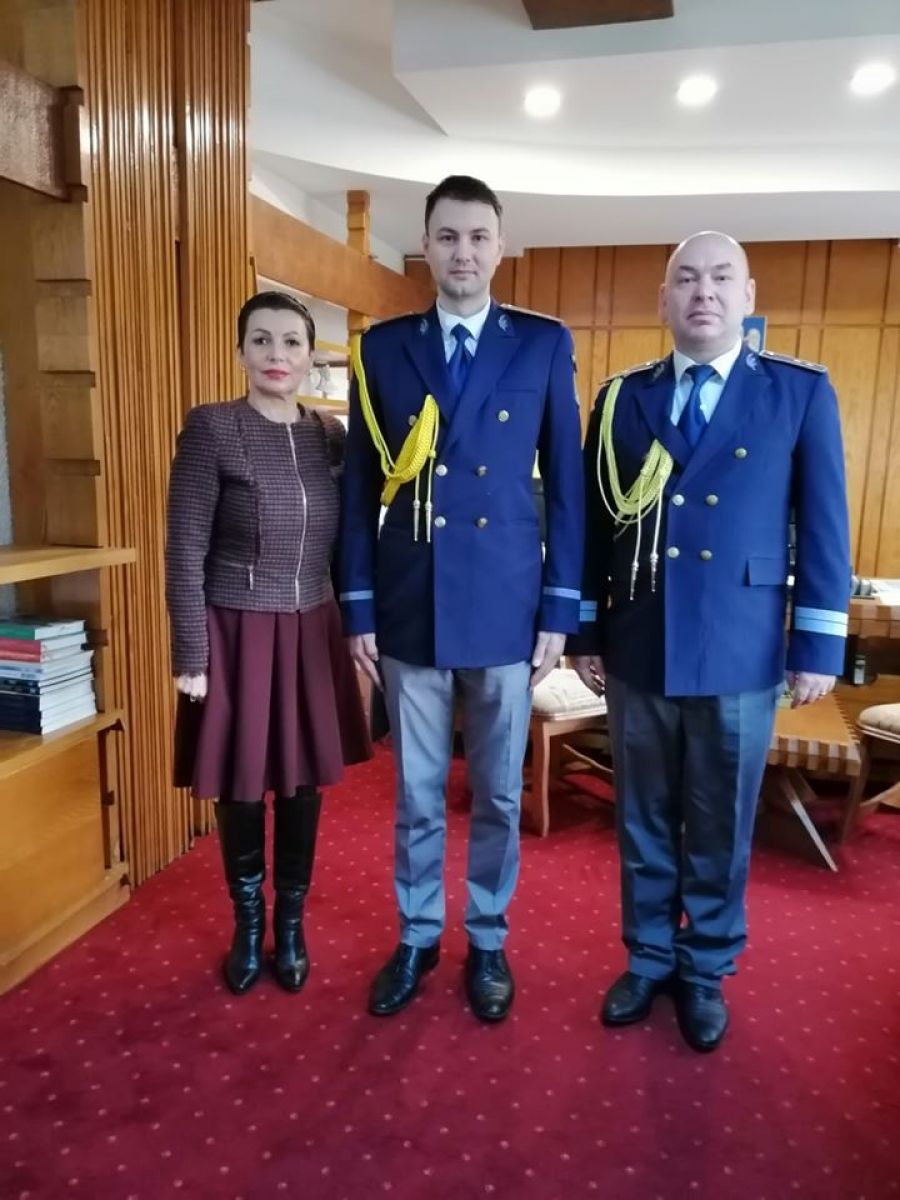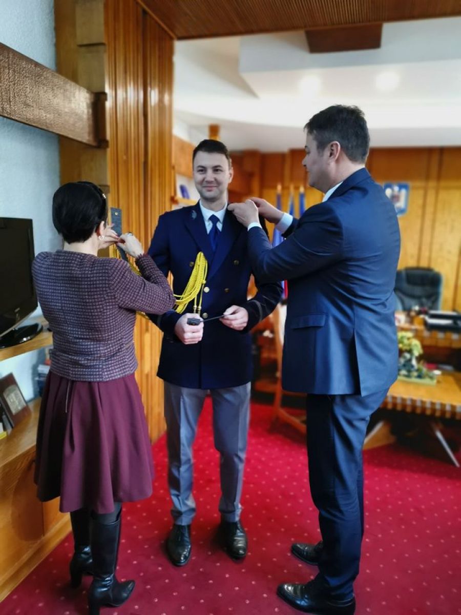 Prefectul Dan Șlincu a dat citire Dispoziției de avansare, felicitându-l ulterior pe Tudor-Gabriel Palote, care a fost astfel avansat de la gradul de subinspector de poliție în gradul profesional de inspector de poliție.