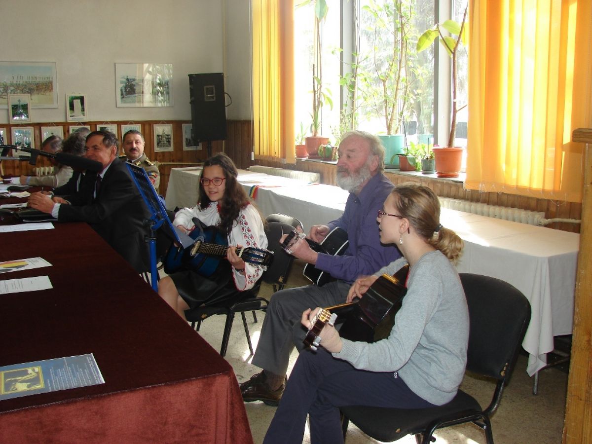 Momentul de culoare al întâlnirii l-au dat cei trei „chitarişti” de la Palatul Copiilor, în speţă profesorul Ludwig Schibinschi, însoţit de două fetiţe de clasa a VI-a de la Şcoala Generală nr. 7, care au interpretat îndrăgitul cântec „Treceţi, batalioane române, Carpaţii!”