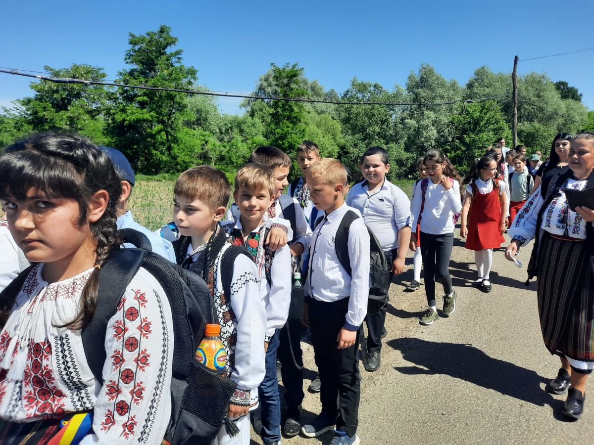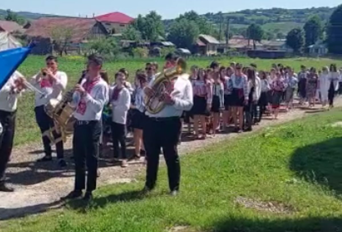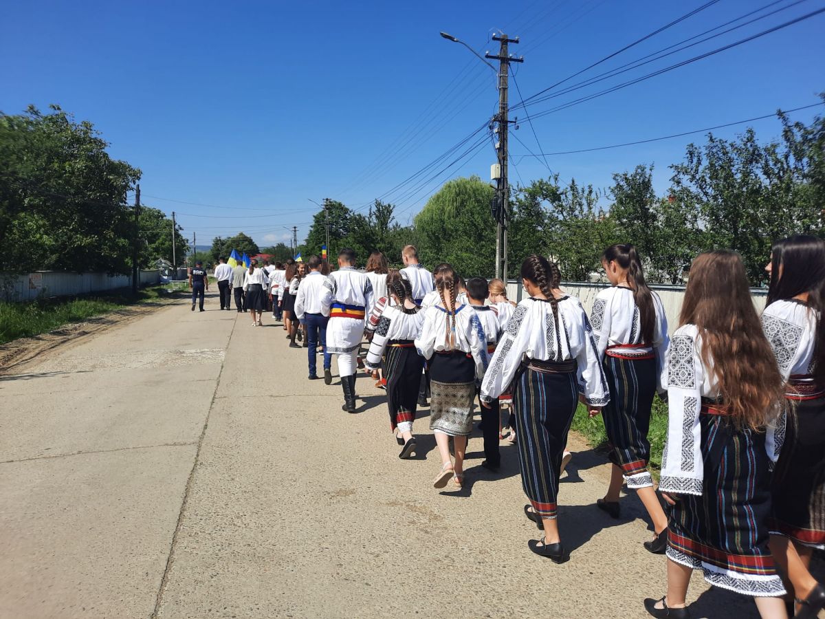 Elevii Școlii ”Tiberiu Crudu”, cadrele didactice, localnici de toate vârstele, au mărșăluit pe drumurile comunei, îmbrăcați în costume naționale și purtând steaguri tricolore, în acordurile fanfarei din Tudora.