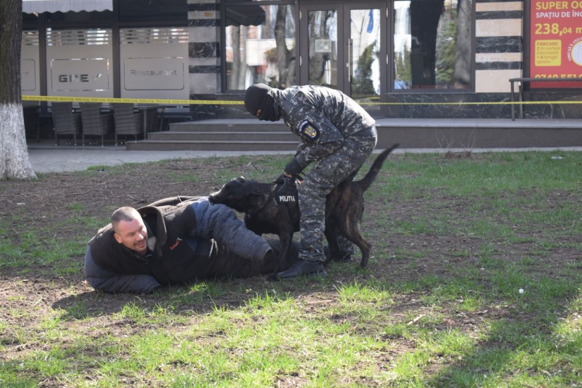 Aflat în dotarea Inspectoratului de Poliție Județean și antrenat pentru misiuni de căutare, patrupedul alături de dresorul său au ajuns în zona Muzeului Județean.