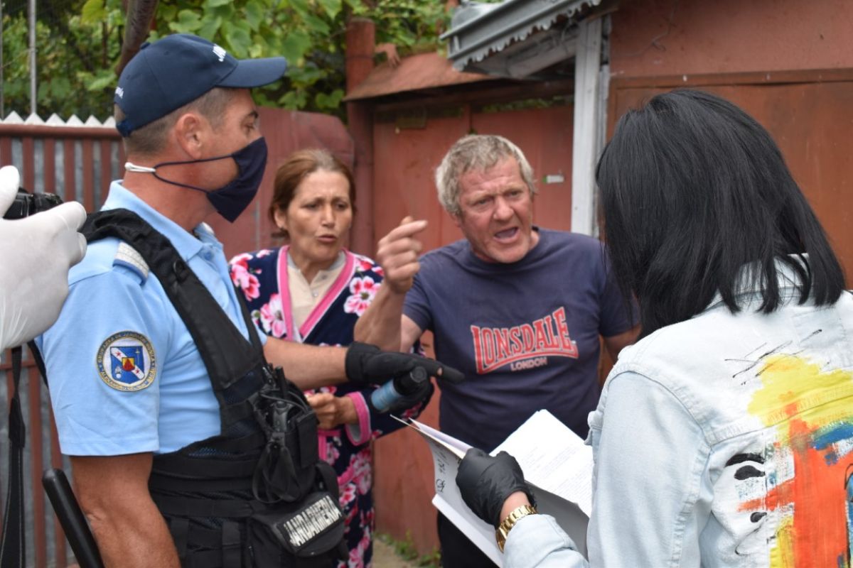 La sosirea reprezentanților SC Locativa SA, executorului și jandarmilor, poarta casei era legată cu lanț și lacăt. Romică Turtă le-a strigat tuturor să plece.