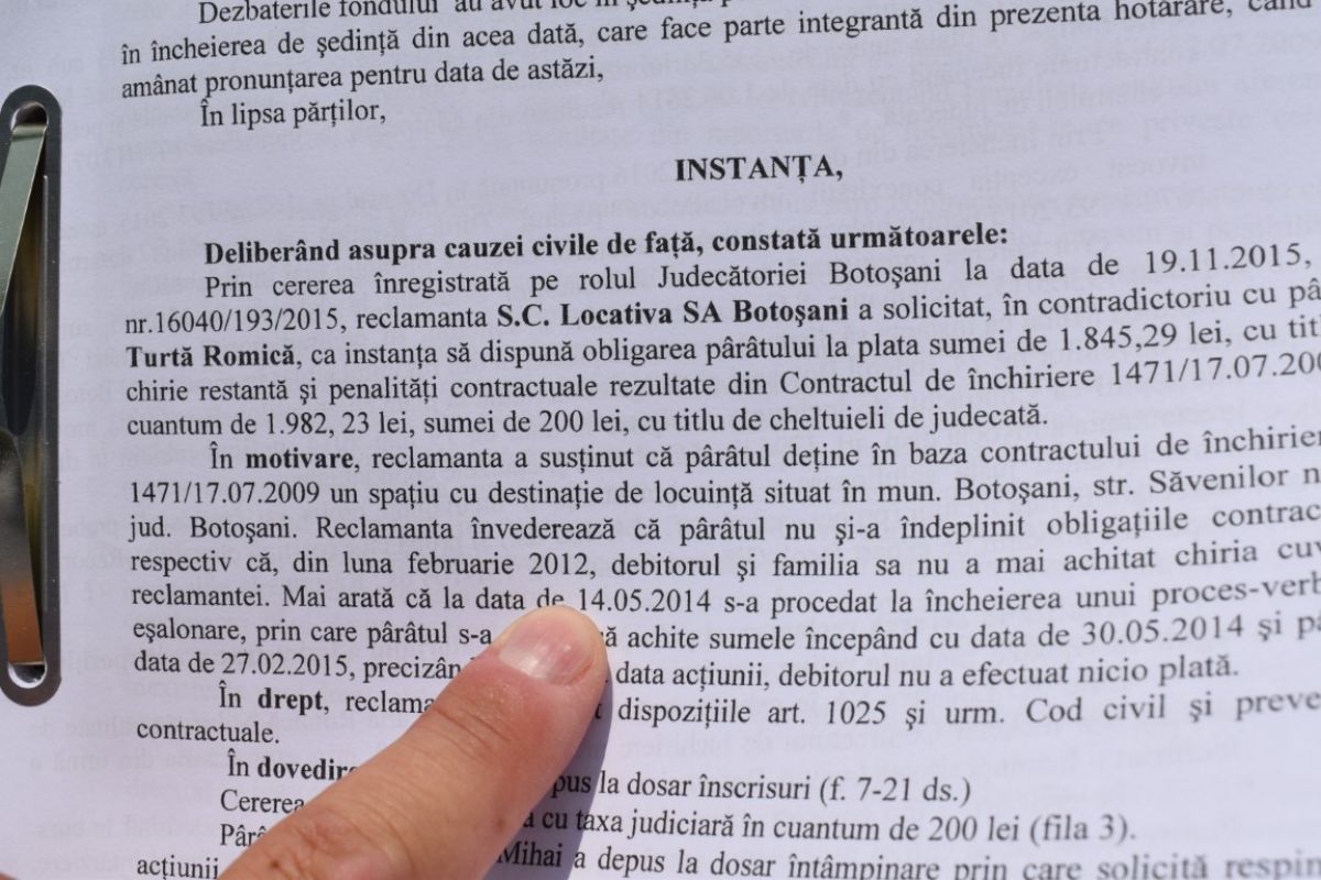 În urmă cu cinci ani a fost deschis un dosar pentru evacuare și pentru neplata chiriei care până la momentul actual a ajuns undeva la 10.000 de lei.