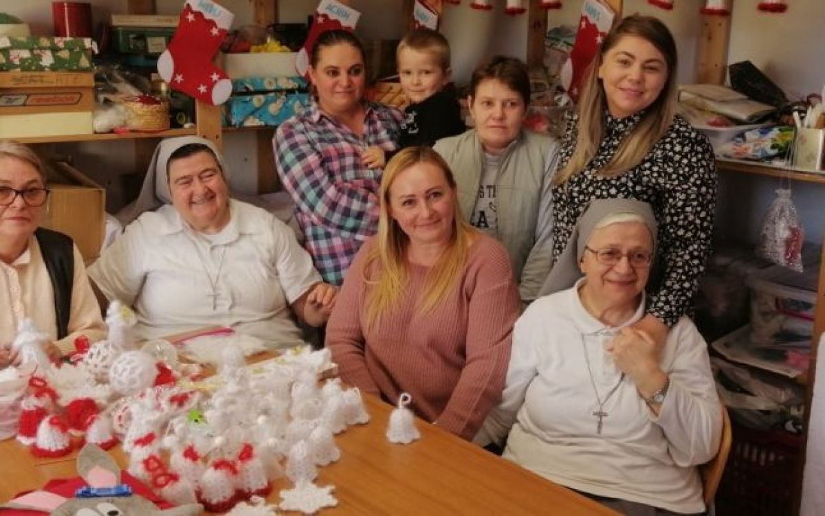 Cele cinci mame lucrează voluntar, câteva ore, zilnic. Vin în micul atelier din cadrul grădiniţei şi sub îndrumarea maicilor catolice din Italia care administrează aşezământul, se apucă de treabă. Deşi sunt doar cinci persoane, reuşesc să confecţioneze sute de ornamente spectaculoase, multe dintre acestea împletite cu măiestrie. Au treabă aproape tot anul.