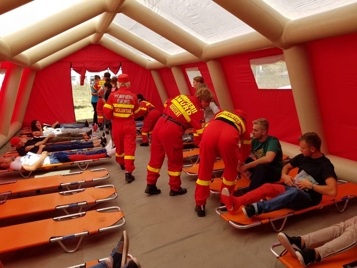 Au mai fost simulate acțiuni de căutare-salvare a unor persoane surprinse sub dărâmături, stingerea unui incendiu izbucnit în internatul liceului, descarcerarea unor persoane rămase captive în două autoturisme implicate într-un accident rutier, stingerea unui incendiu de pădure, precum și asanarea teritoriului de muniția rămasă neexplodată.