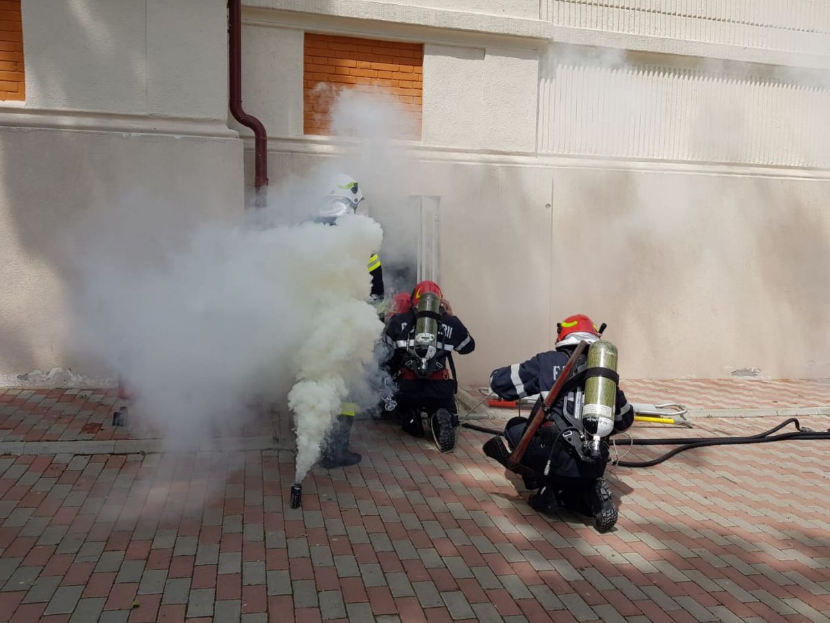 Au fost simulate acțiuni de căutare-salvare a unor persoane rămase blocate în sălile de clasă, stingerea unor incendii izbucnite în laboratorul de chimie și amfiteatru, descarcerarea unor persoane rămase captive în două autoturisme implicate într-un accident rutier, precum și de asanare a teritoriului de muniția rămasă neexplodată.