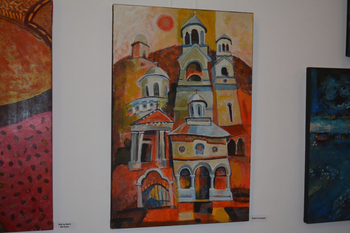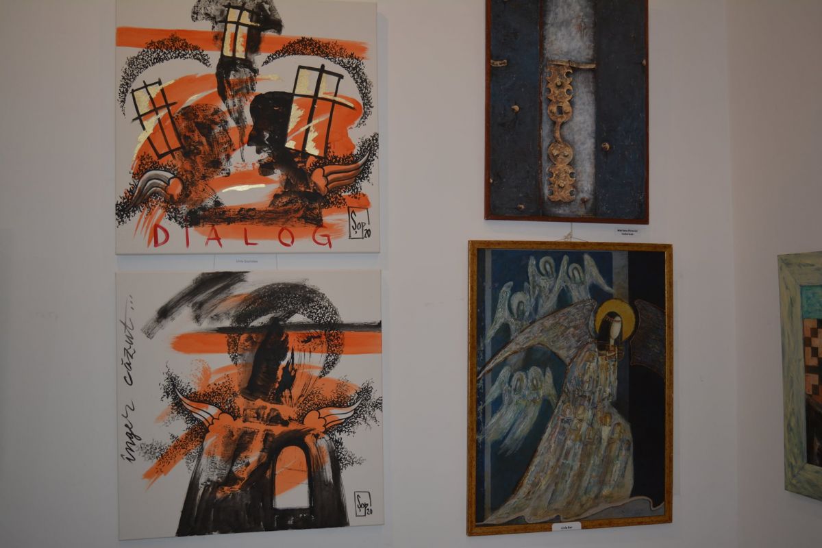 ”90 de lucrări de pictură religioasă, sculptură, acuarelă, pe toate gusturile. Sunt artiști membri ai Uniunii Artiștilor Plastici din România, aproape din toate filialele, și de asemenea maeștri ai artei românești, profesori universitari, dar mai ales tineri la început de carieră. Consider că este foarte important să ne gândim și la ei. Mulțumesc tuturor celor care au răspuns invitației mele, dar și pentru găzduire și prietenie. Aveți o galerie foarte frumoasă, sunt foarte încântată”,