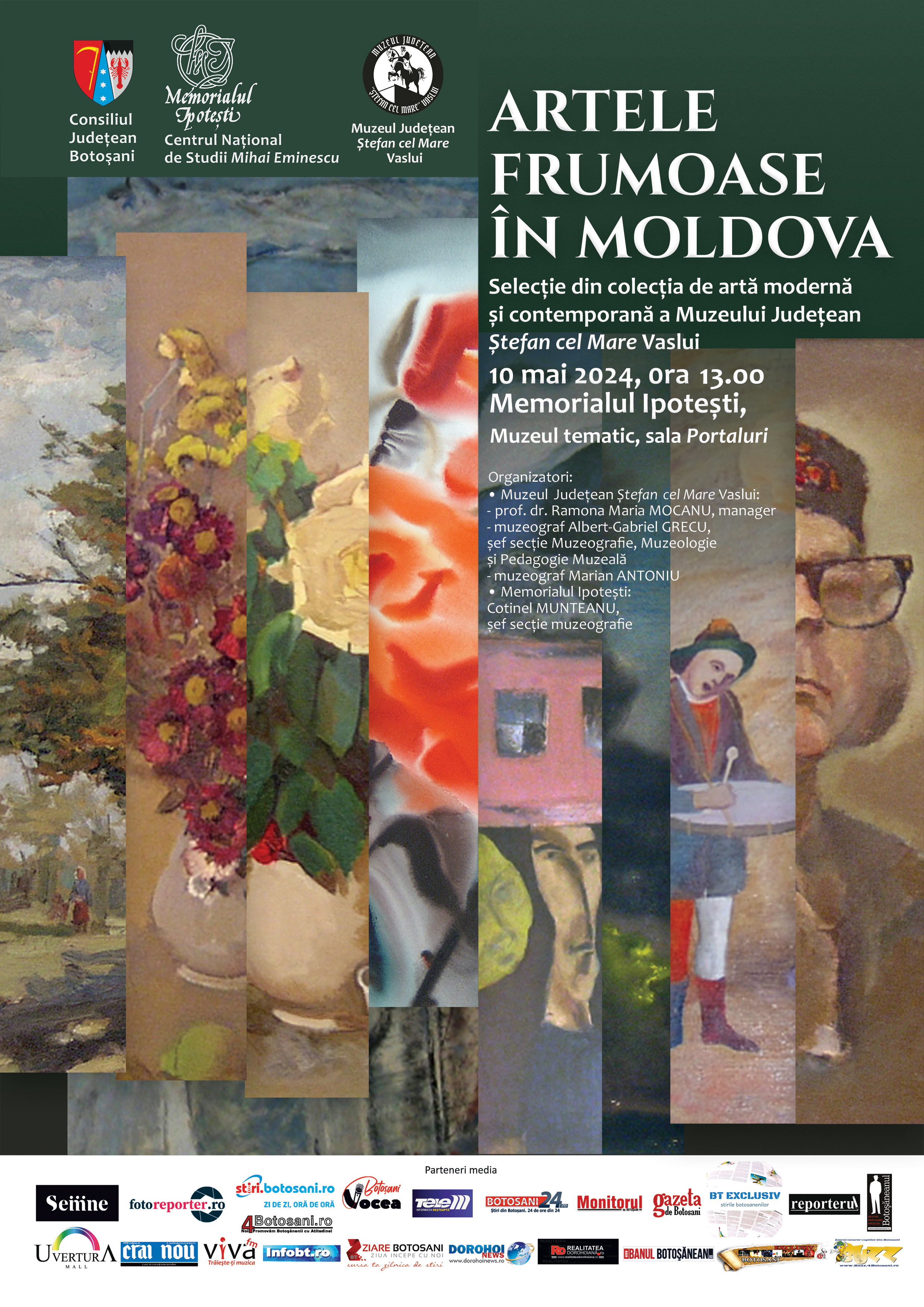Memorialul Ipotești – Centrul Național de Studii „Mihai Eminescu”, instituție aflată în subordinea Consiliului Județean Botoșani, continuă seria de activități culturale cu organizarea expoziției „Artele frumoase din Moldova” din Colecția de Artă Plastică Modernă și Contemporană Românească a Muzeului Județean „Ștefan cel Mare” Vaslui.