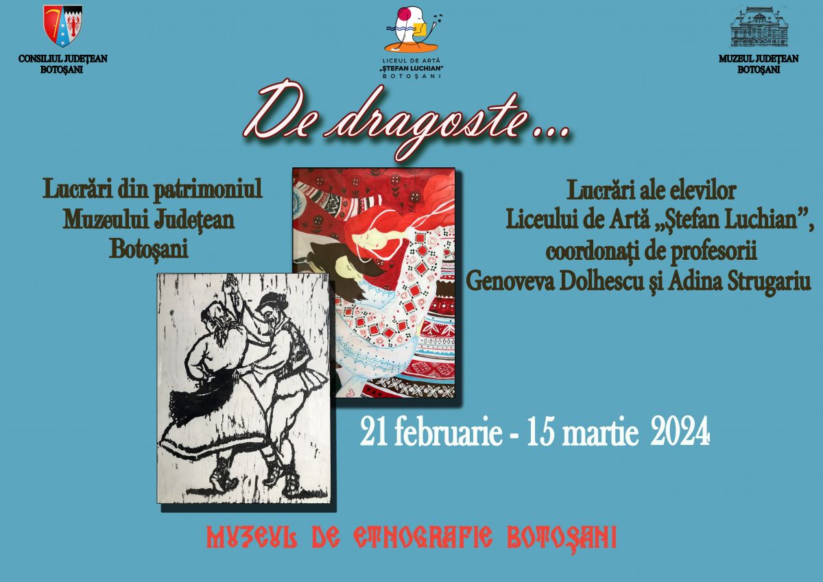 Muzeul Județean Botoșani, Secția de Artă Plastică-Etnografie organizează, în colaborare cu Liceul de Artă „Ștefan Luchian” Botoșani, expoziția de arte vizuale intitulată „De dragoste...”.