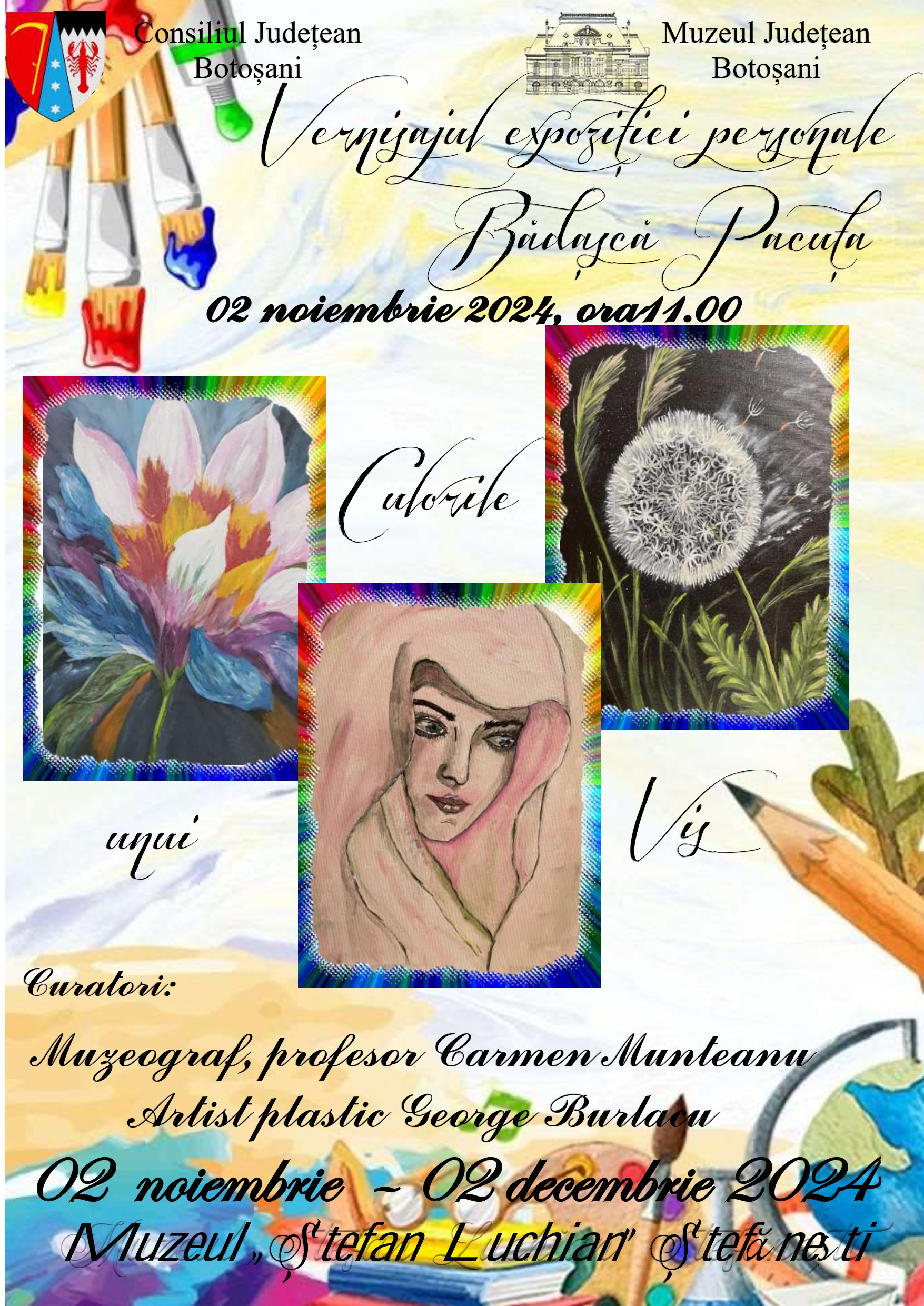 Muzeul Județean Botoșani, prin secția de Artă Plastică – Etnografie – Științele Naturii, organizează la Muzeul „Ștefan Luchian” din Ștefănești expoziția „Culorile unui vis”, cu lucrări de pictură aparținând artistei plastice amatoare Pacuța Bădașcă.