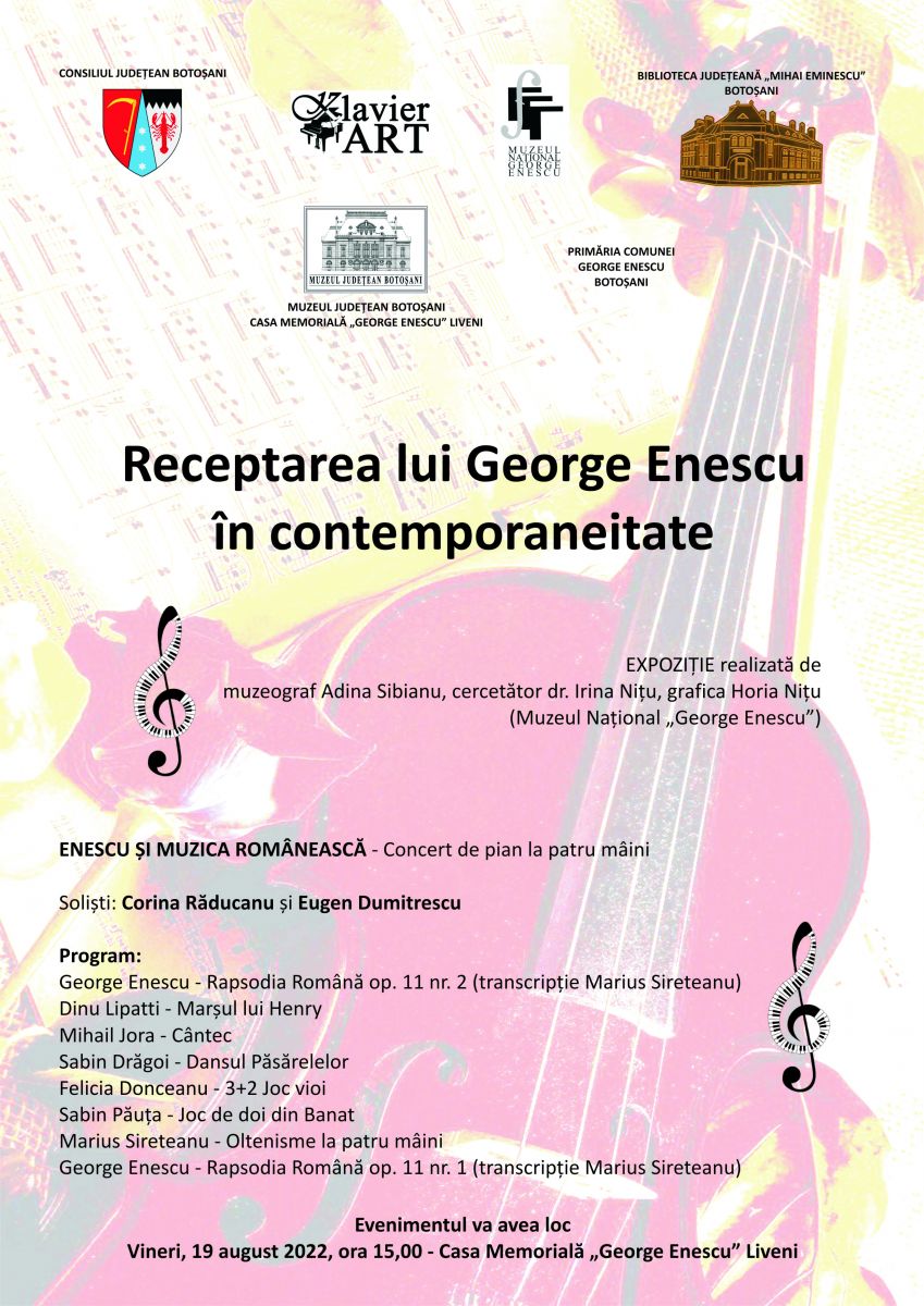 În cadrul manifestării va fi vernisată expoziția „Receptarea lui George Enescu în contemporaneitate”.