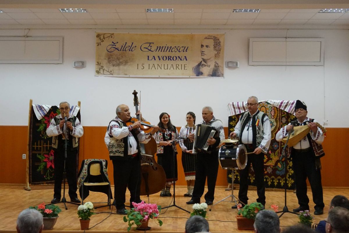 Acolo, Centrul Cultural „Mihai Eminescu“ a fost amfitrionul unor evenimente culturale inedite, în primul rând prin modul în care scena a reușit să interacționeze cu întreaga sală. Practic, numerele din programul artistic pregătit de gazdele voronene, cele mai multe pe teme muzicale, au alternat absolut natural cu momentele lirice, în interpretarea scriitorilor prezenți la evenimentul eminescian.