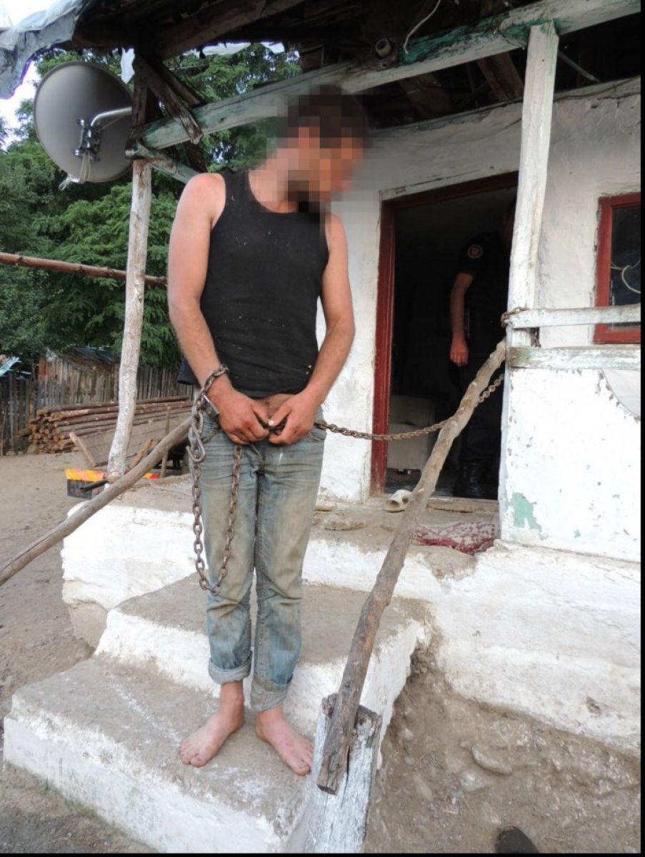 Unul dintre sclavi le-a povestit anchetatorilor cum a fost ţinut legat mai bine de un an. „Eram pus pe sârmă, ca un câine, în curte. Aveam un lanţ lung de circa trei metri şi sîrma era lungă de vreo 5 metri. Stăteam acolo şi mă plimbam de colo-colo, cât ajungeam, fiindcă, dacă făceam un pas mai mult, mă trăgea lanţul înapoi“