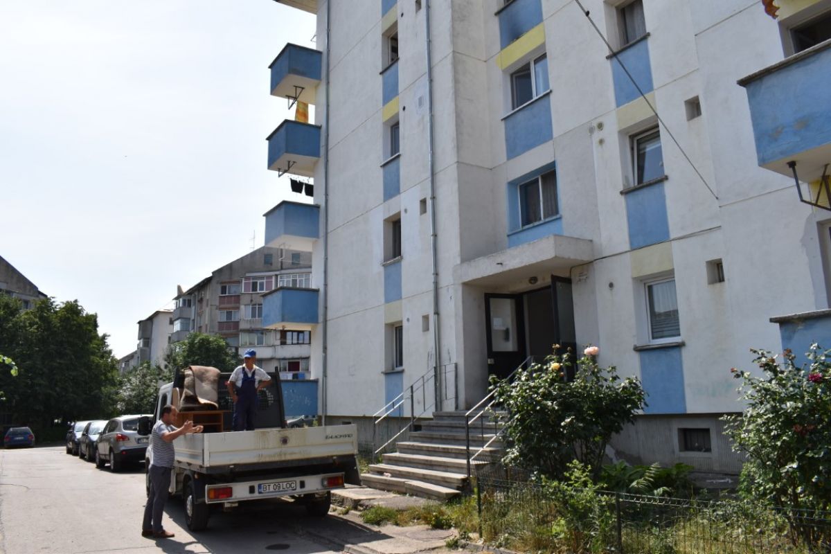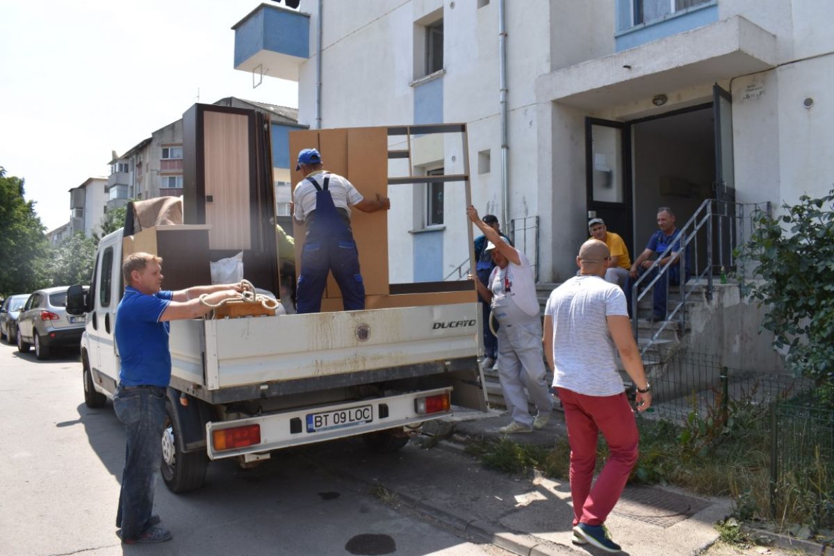 Mobila și lucrurile au fost încărcate într-un camion de către muncitorii de la Locativa spre a fi depozitate într-un spațiu al societății.