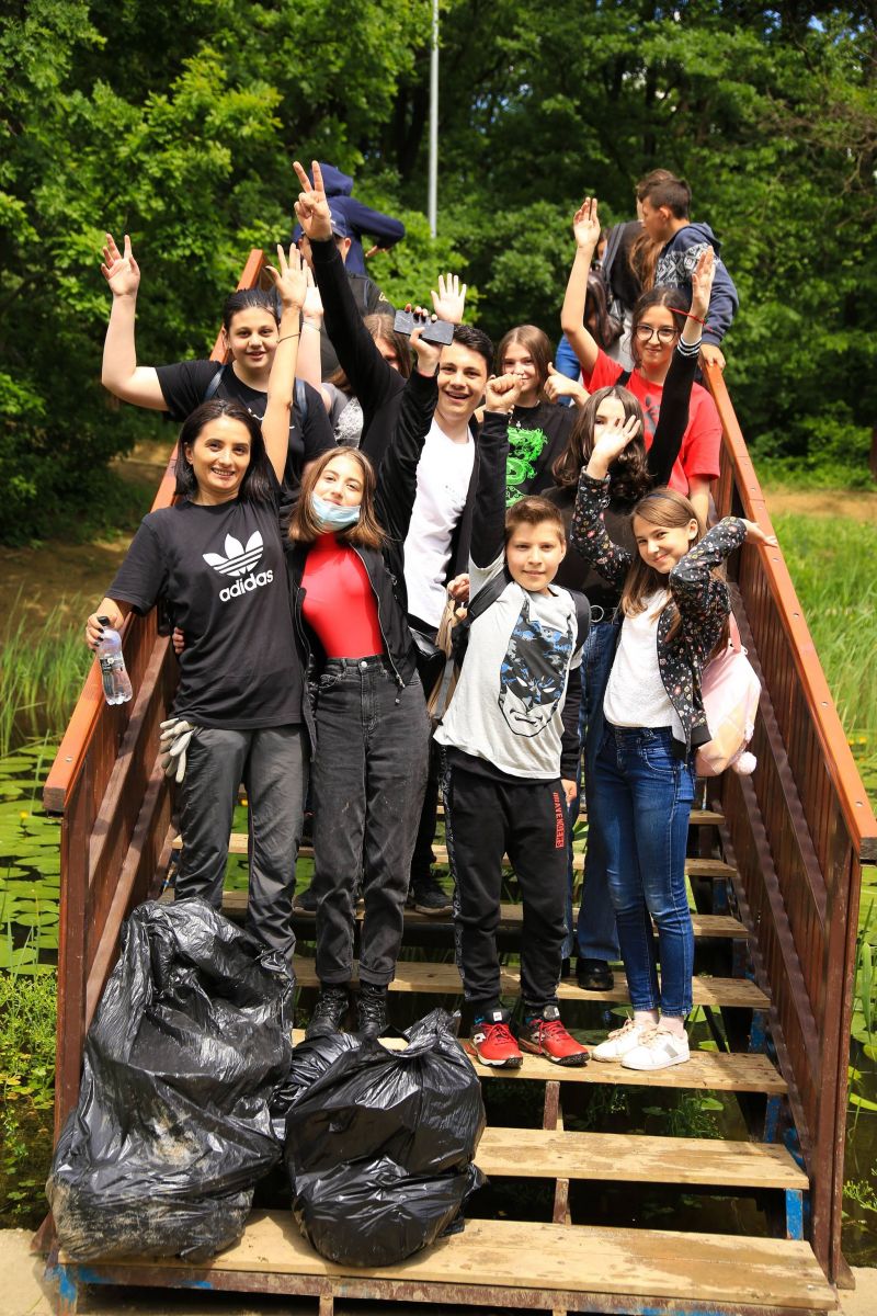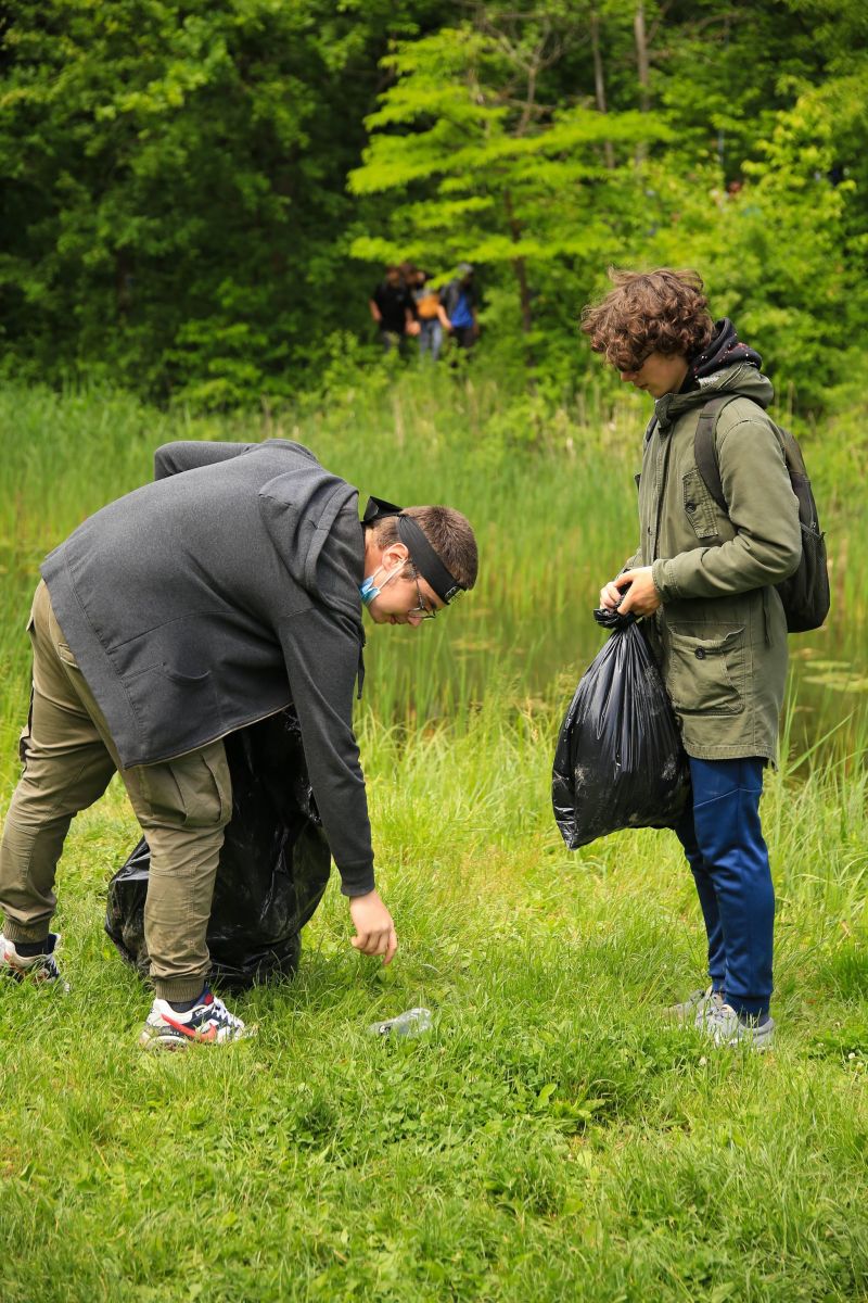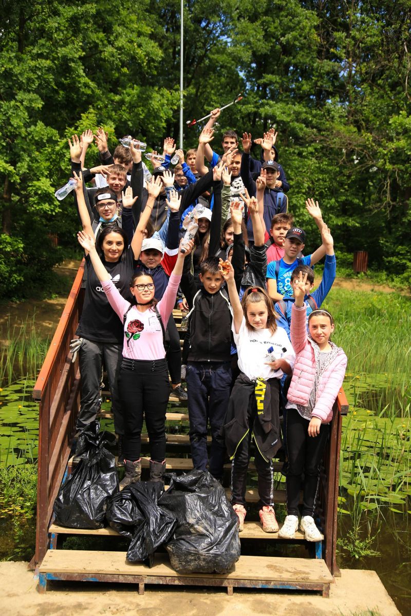 Aproximativ 150 de elevi și voluntari – organizați pe echipe – au colectat gunoaiele aruncate în zona pădurii, s-au bucurat de soare și de vremea frumoasă, au luat masa în natură, au râs și au avut parte de o zi plină de voie bună