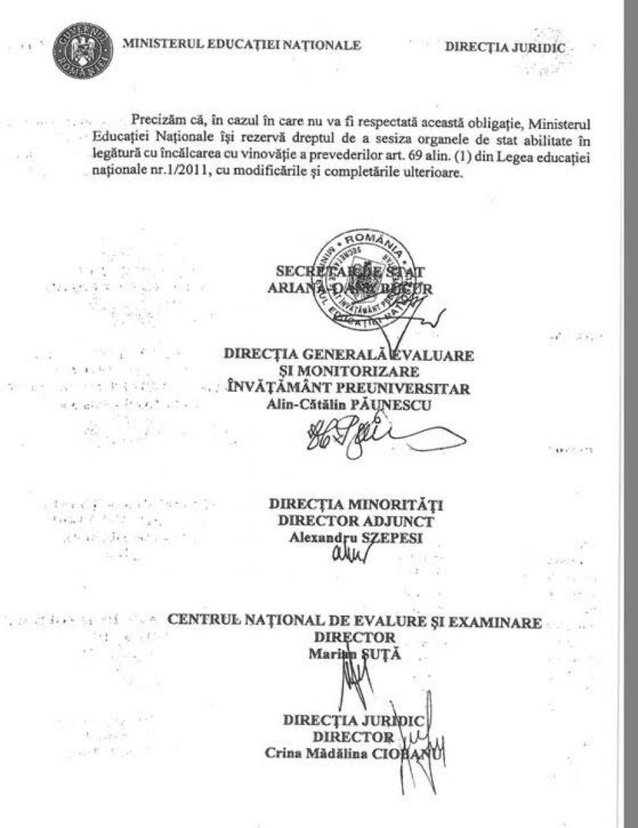În documentul respectiv se precizează că articolul 69 alineatul 1 din Legea Educației Naționale 1/2011 stipulează că în cadrul unităților de învățământ preuniversitar se folosesc numai manuale școlare și auxiliare care sunt aprobate de către Ministerul Educației Naționale.