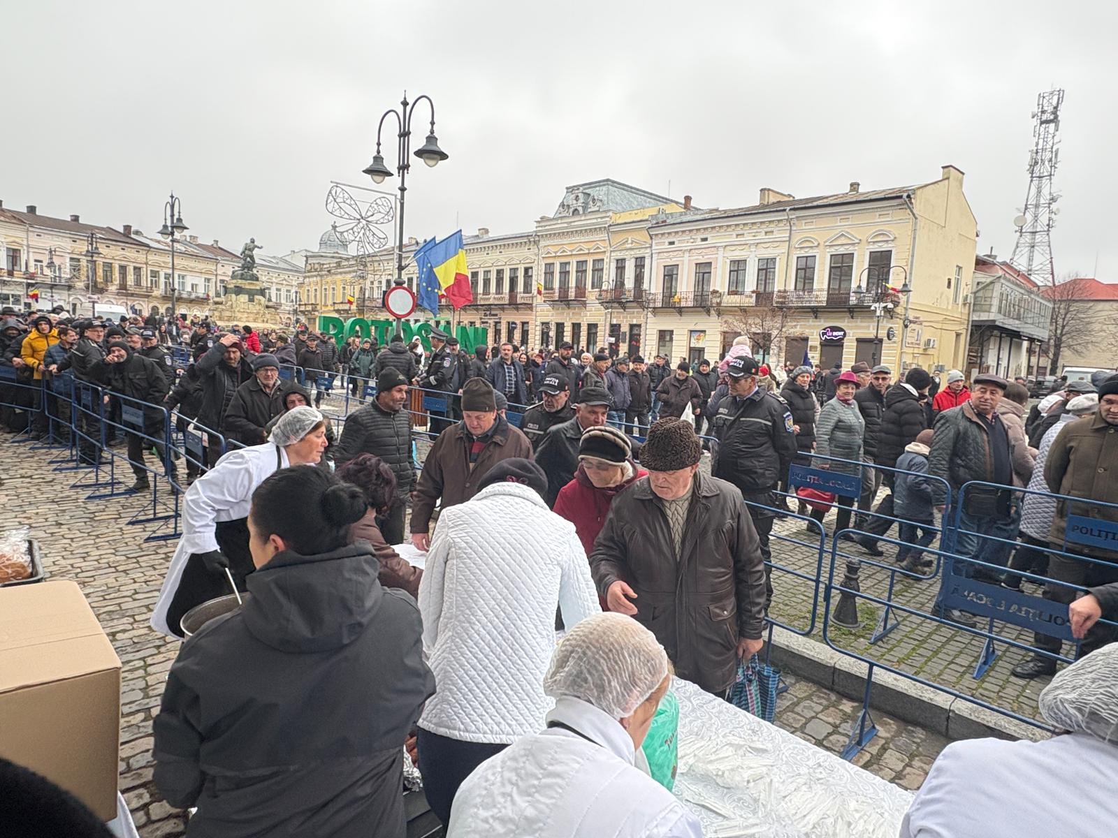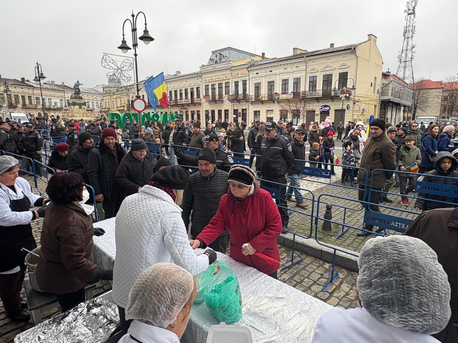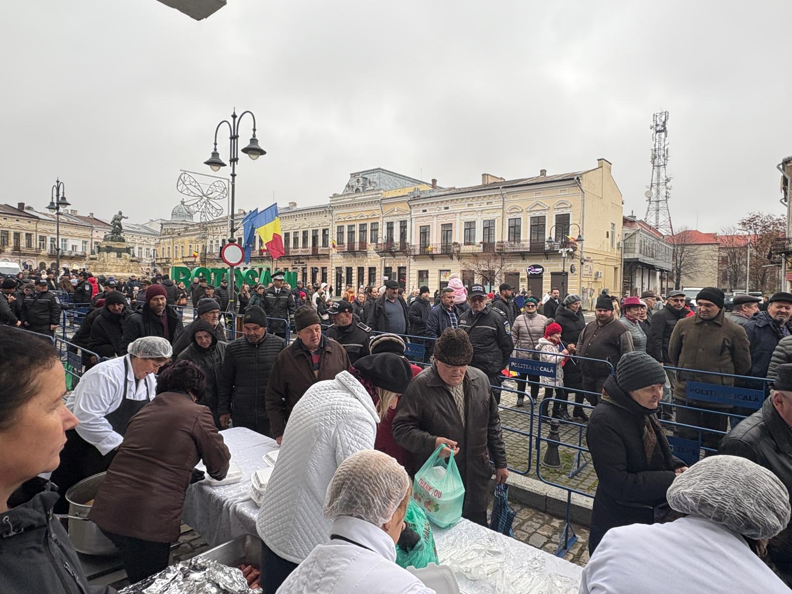 După încheierea manifestărilor dedicate Zilei Naționale a României, botoșănenii prezenți în Centrul Istoric au fost invitați, ca în fiecare an, să se bucure de tradiționala porție de fasole cu cârnați.