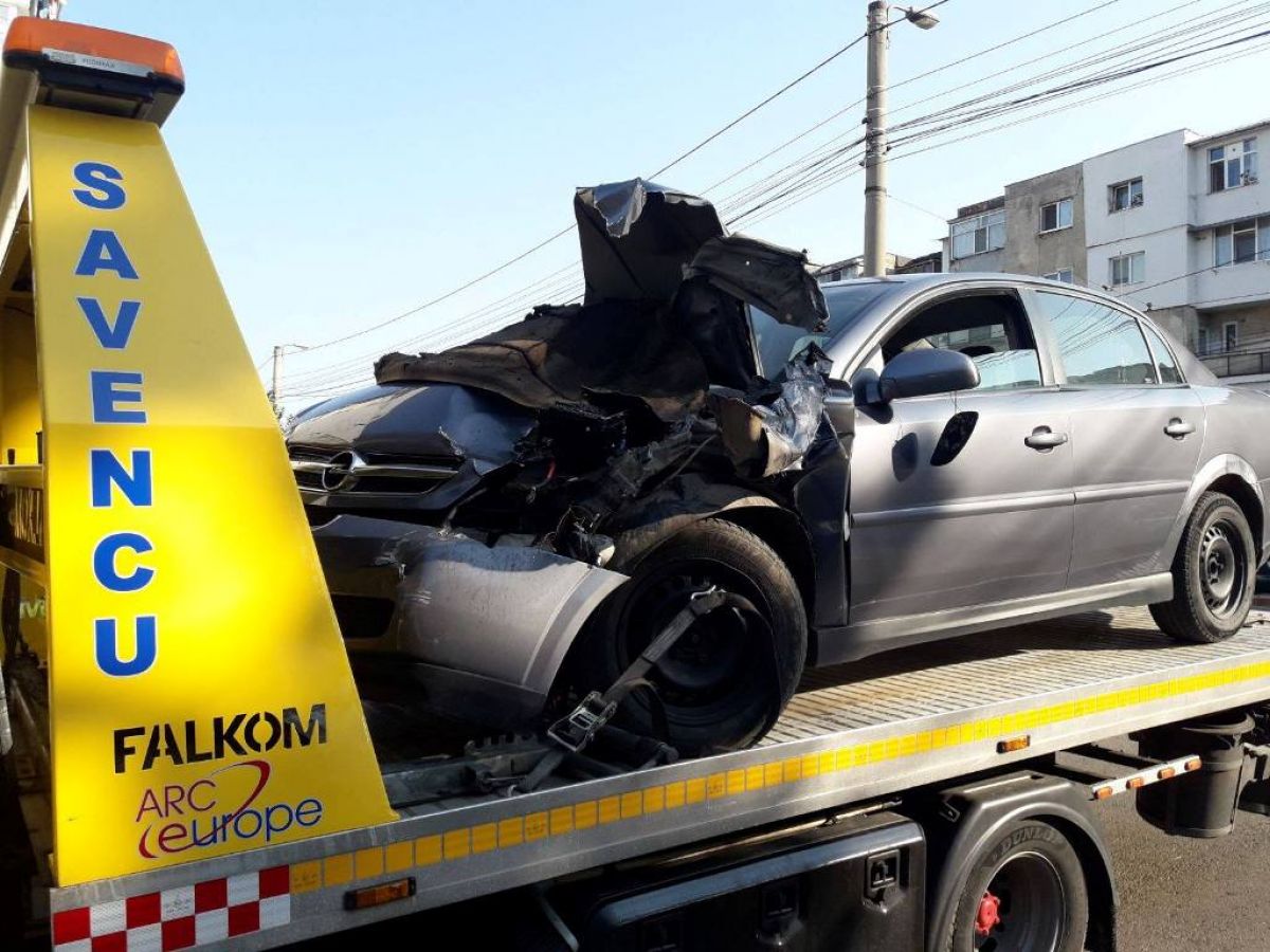 Cert este că Opelul era serios avariat în stânga față, iar o pasageră din acesta a fost transportată la spital.