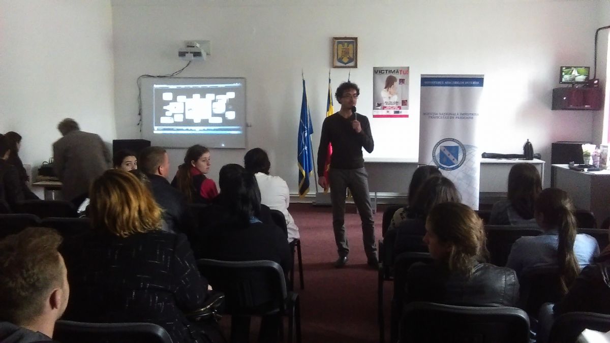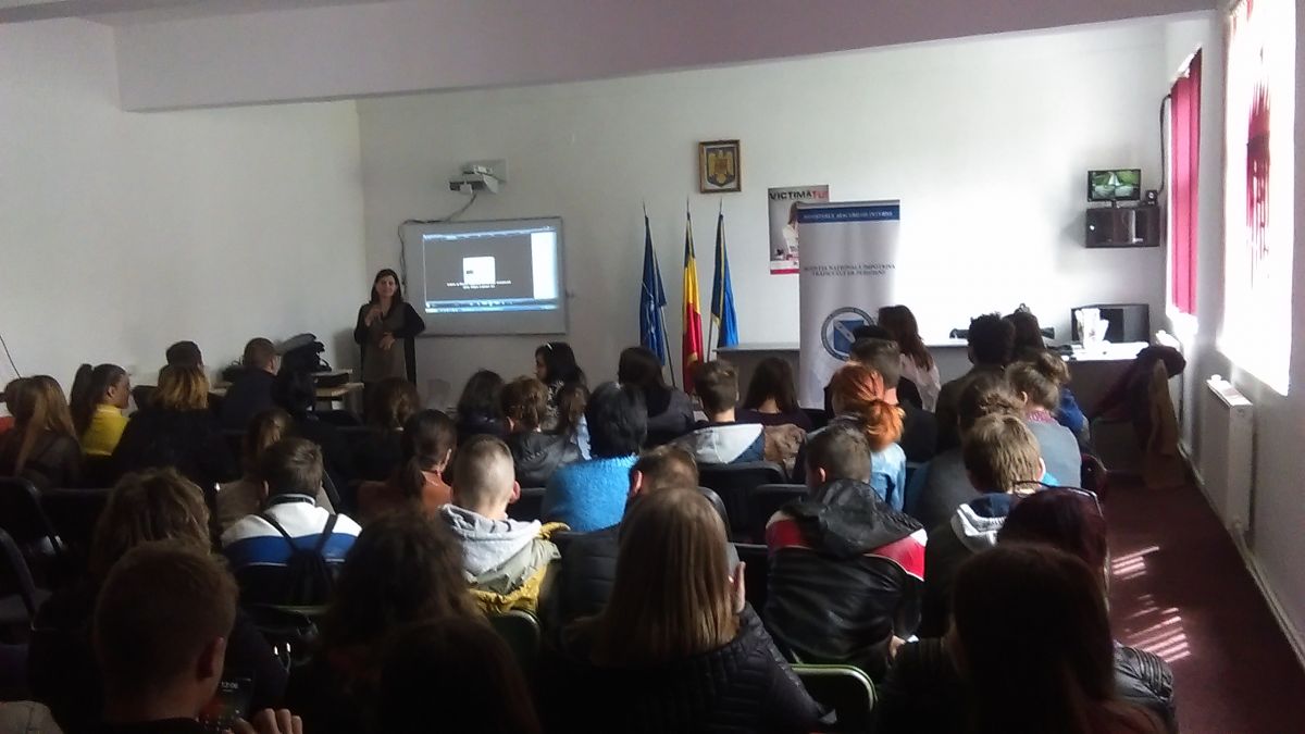 În săptămâna recent încheiată, Centrul Regional, în parteneriat cu Instituția Prefectului Botoșani și Inspectoratul Județean Școlar Botoșani, au desfășurat mai multe acțiuni de prevenire și informare cu privire la riscurile asociate traficului de persoane la Liceul cu Program Sportiv din municipiul Botoșani și Liceul Tehnologic Bucecea, județul Botoșani. Scopul acestor intalniri cu elevii si cadrele didactice a vizat constientizarea factorilor de risc si abordarea educatiei pentru prevenirea situatiilor de risc cu privire la traficul de minori in vederea identificarii modalitatilor eficiente de prevenire si inlaturare a riscurilor expunerii la fenomenul traficului de persoane.Totodata, s-a pus un accent deosebit pe adoptarea unei atitudini unitare a scolii si a intregii comunitati cu privire la pericolul reprezentat de fenomenul traficului de persoane.