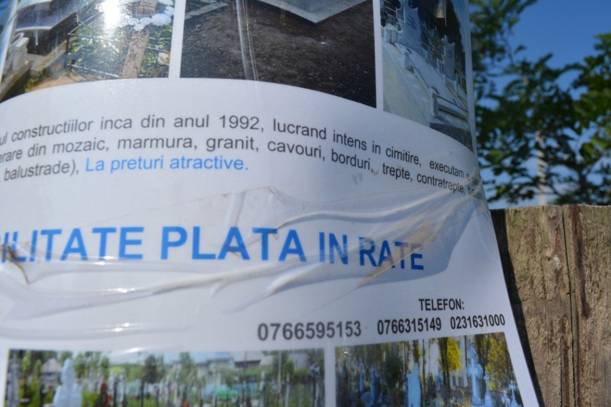 Există o vorbă în popor, că moartea (ne) vinde pe toți cel mai bine. Dărăbăneanul la care facem referire s-a inspirat din zicală și și-a deschis o afacere taman lângă cimitirul orașului. Și pentru a-și asigura clienți, chiar și dintre cei cu bugete mai mici, își vinde marfa și în rate.