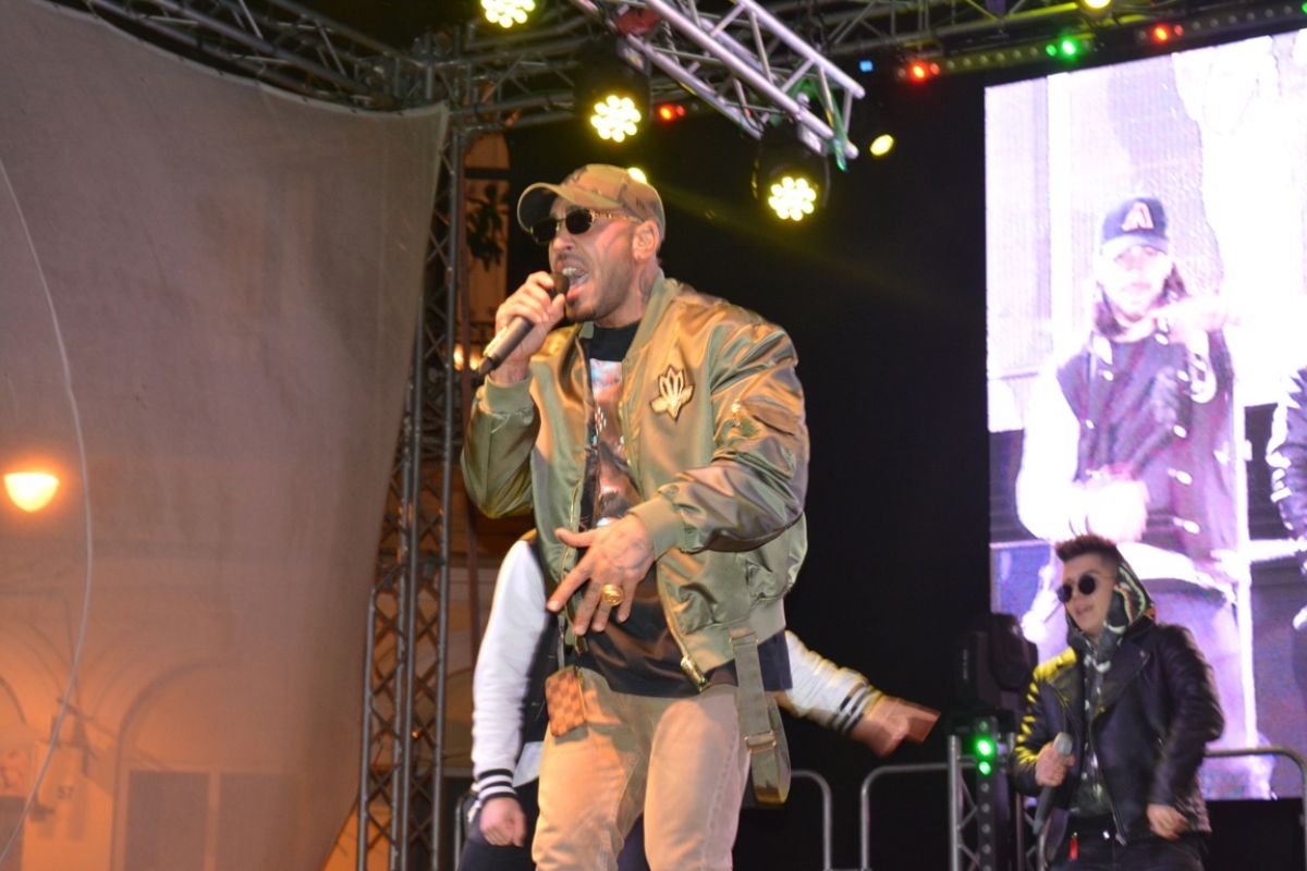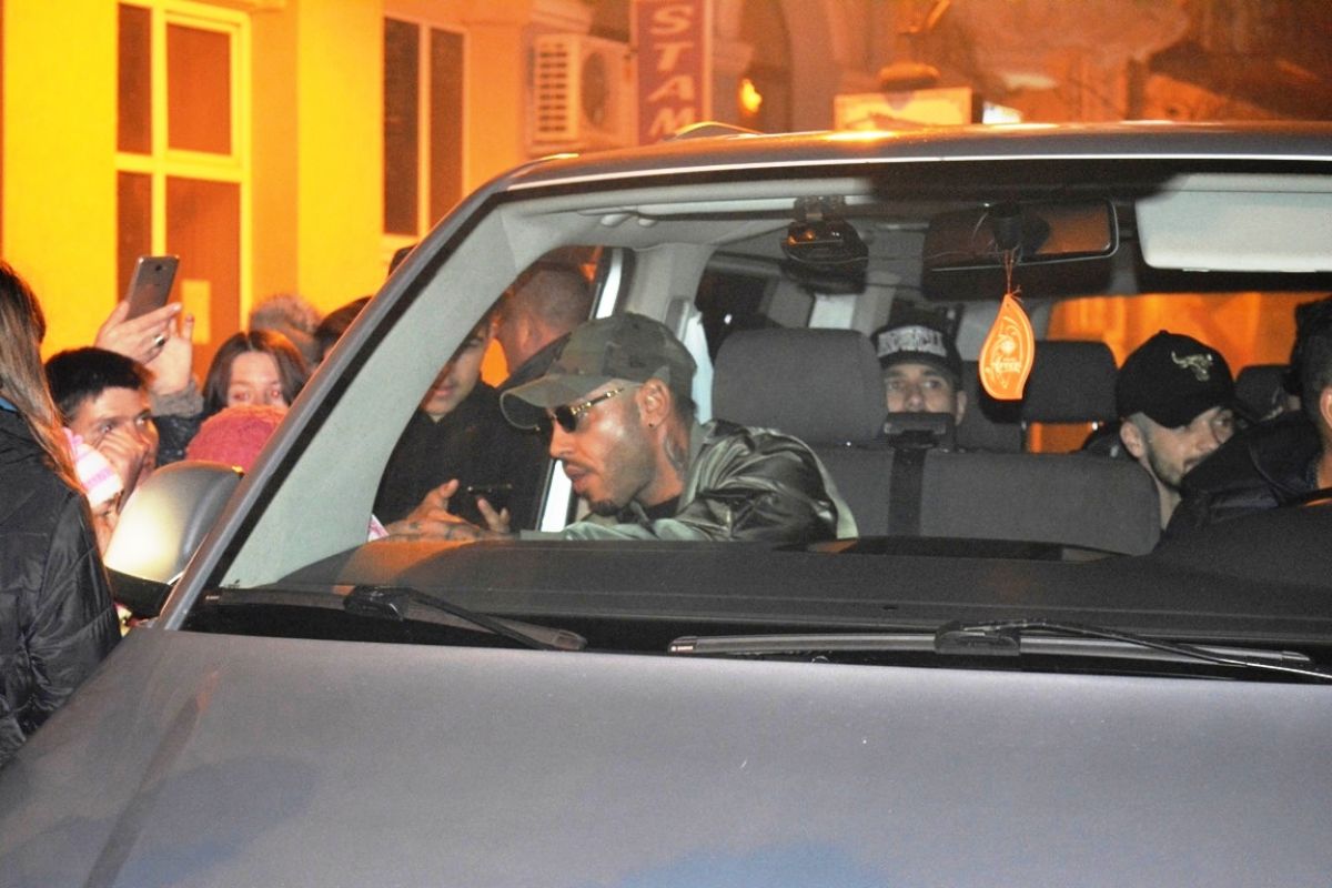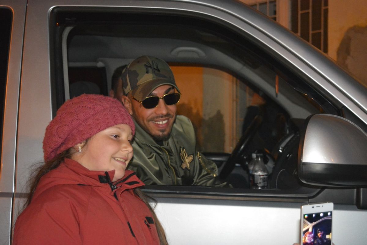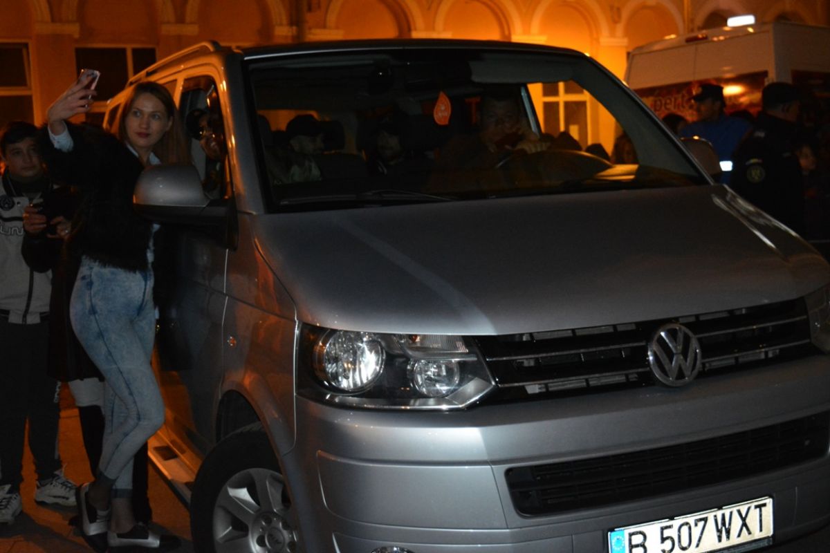 Pe la ora 22:00 şi la o temperatură de numai 5 grade, partenerul Antoniei a stat mereu cu ochelari de soare. Deşi o mulţime de adolescenţi şi copii se îngrămădeau la poze şi autografe, a refuzat să coboare din maşină, făcând selfie-uri doar de pe scaunul din faţă al automobilului. A deschis portiera doar atunci când a trebuit să urce pe scenă.