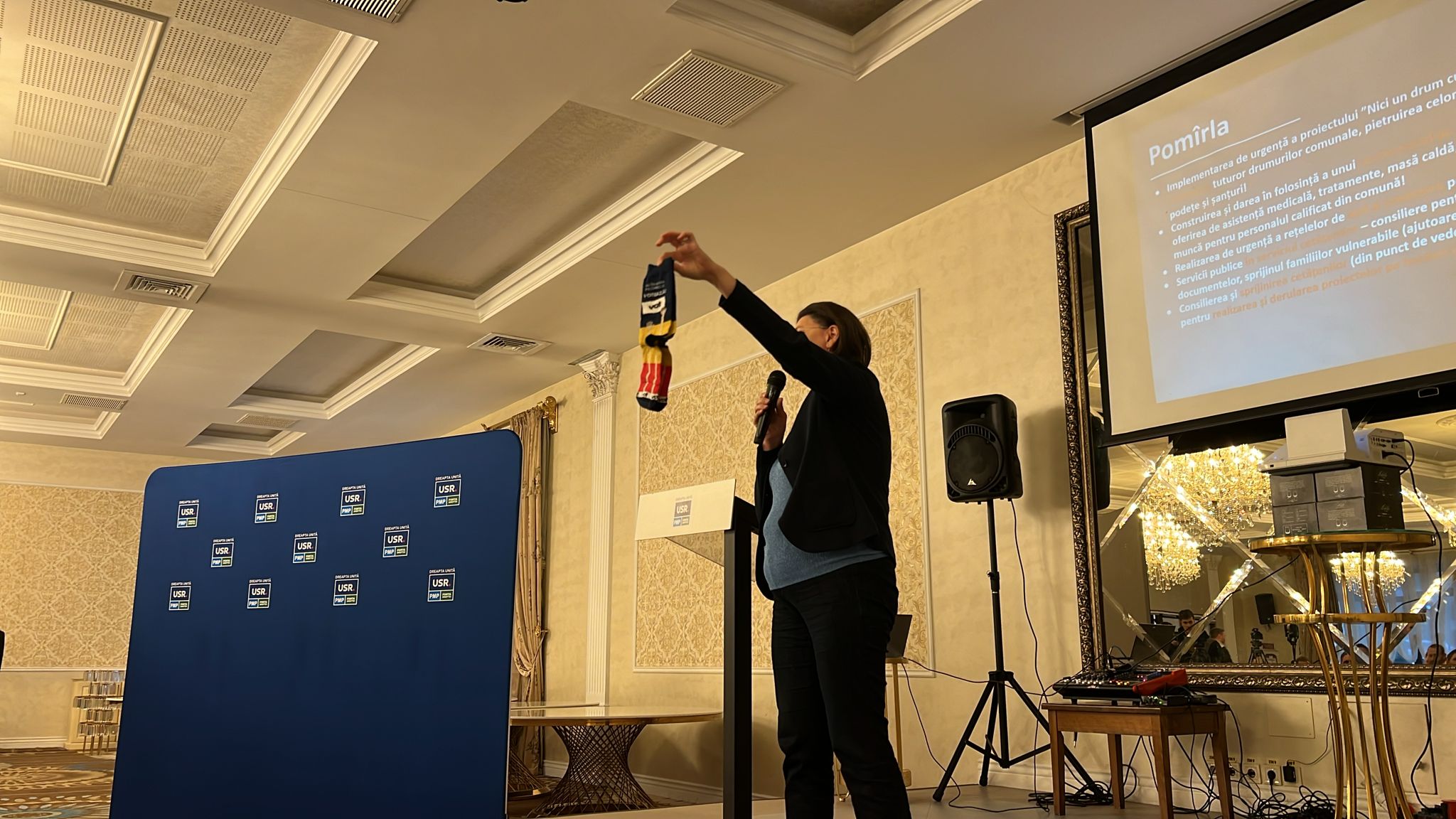 Respectivul i-a dat cadou o pereche de șosete, pe care le-a prezentat în fața celor aproximativ 200 de oameni strânși la salonul de evenimente din Botoșani.