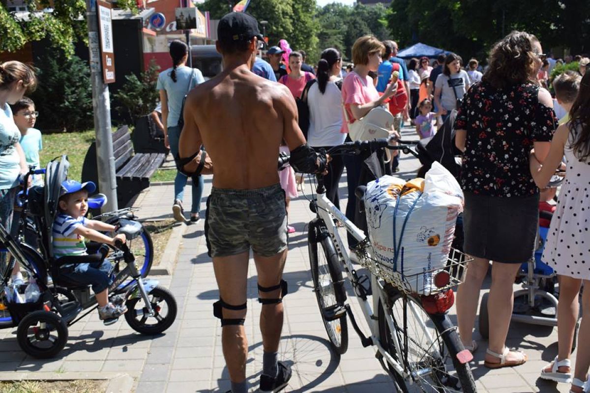 La polul opus s-a aflat ieri un alt botoșănean, care toropit de atâta căldură, s-a gândit că este timpul potrivit să facă o plimbare cu bicicleta în pantaloni scurți, fără tricou sau maiou, dar cu șapcă, genunchiere și cotiere.