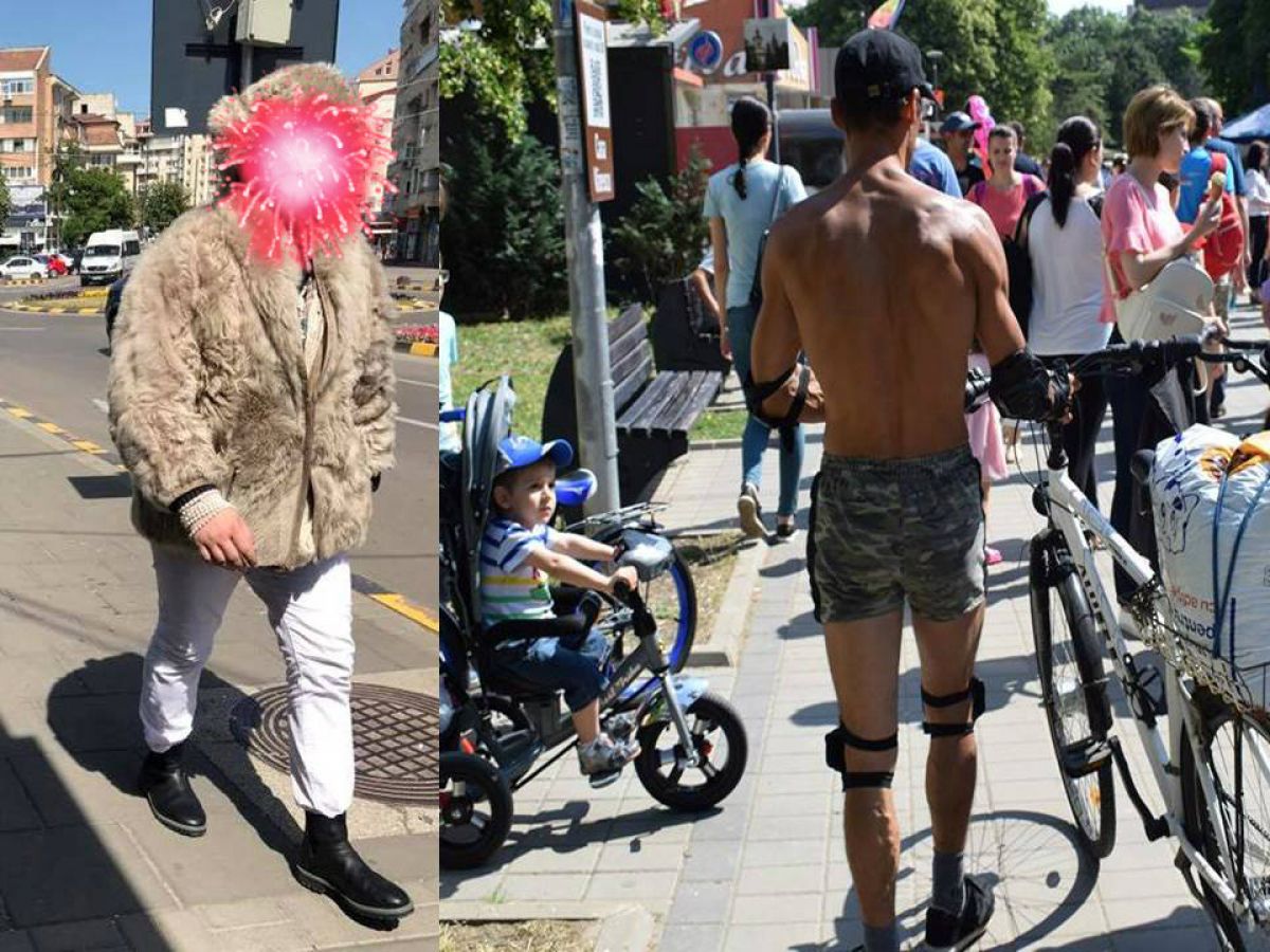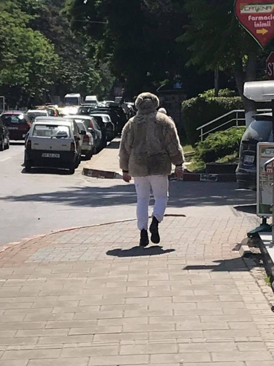 Într-o zi în care afară erau ”doar” vreo 30 de grade, unul dintre aceștia a fost surprins la plimbare cu ditamai haina de blană, la care asortase și o căciulă pe măsură.