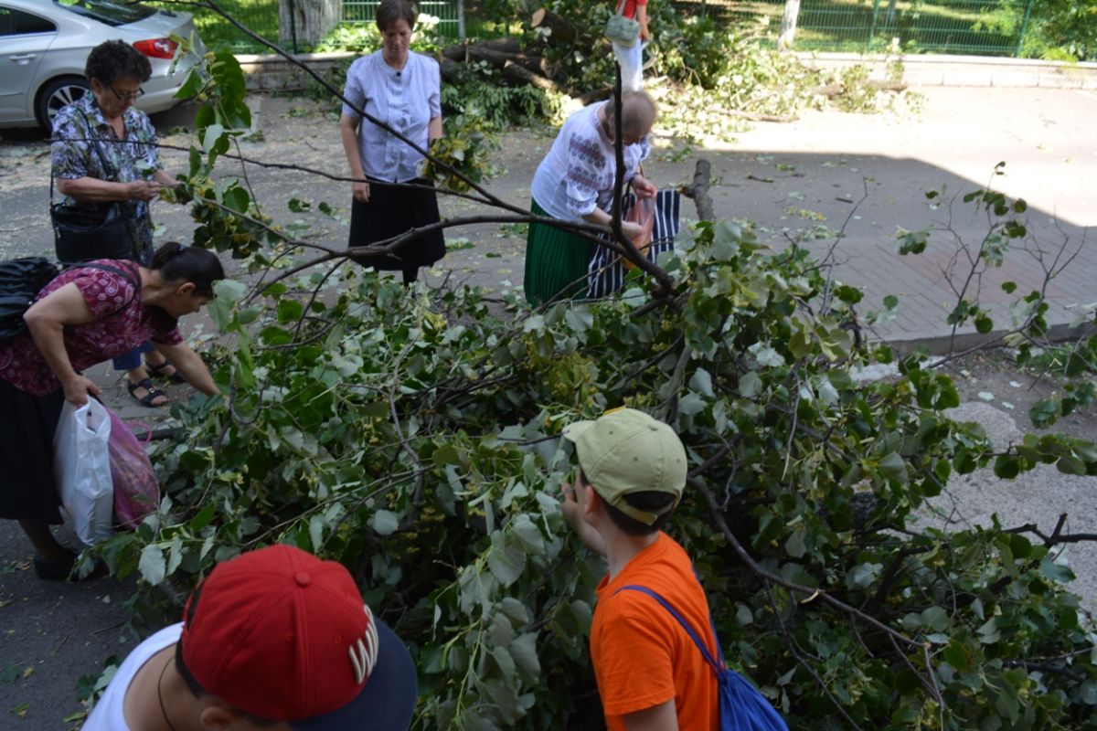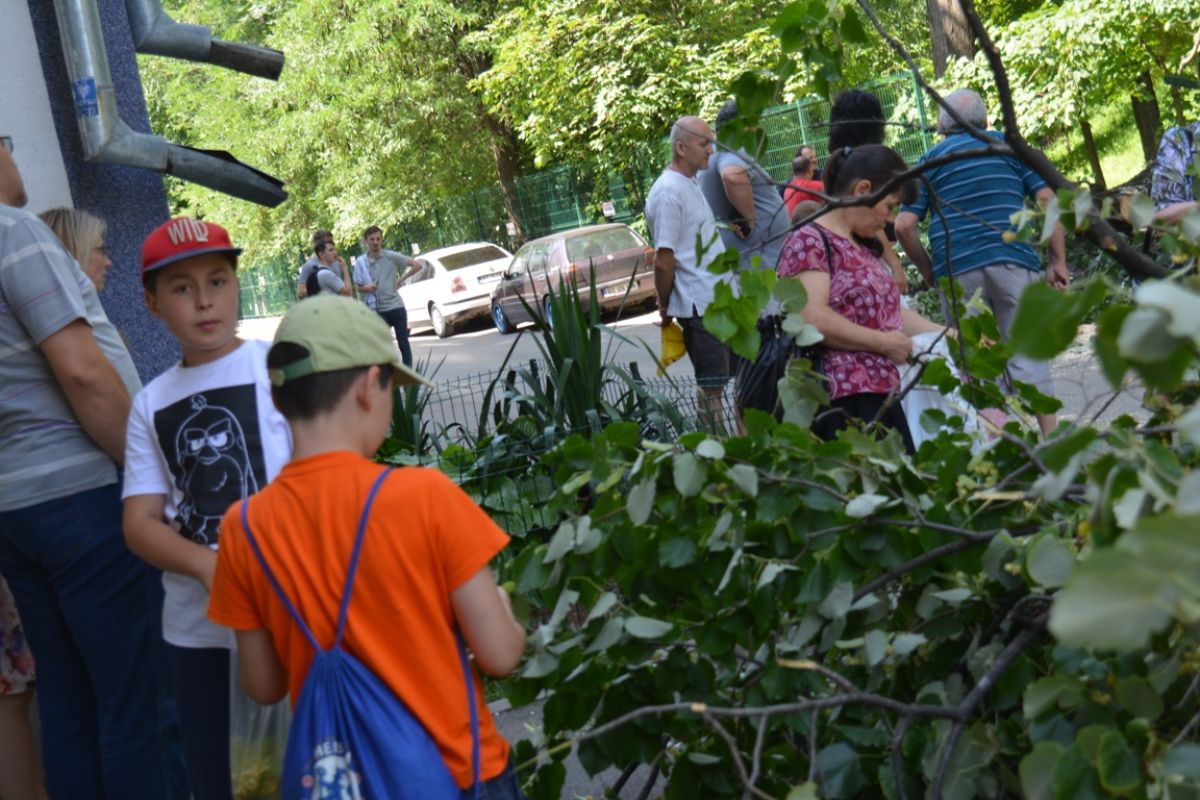 În timp ce pompierii şi poliţiştii locali interveneau la faţa locului pentru a îndepărta crengile, câteva gospodine şi-au găsit o cu totul altă treabă. Ele au început să culeagă teiul de prin crengi.