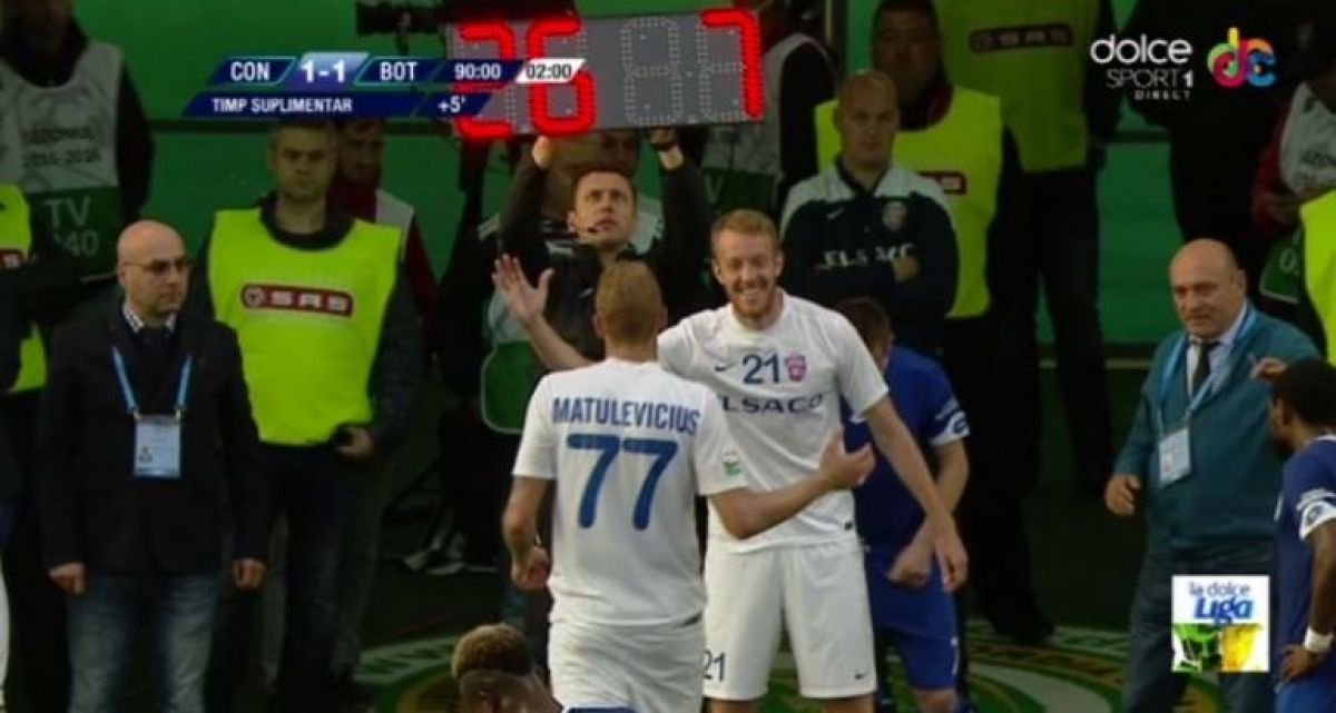 Tehnicianul oaspeţilor l-a introdus abia în minutul 90 + 2 pe Roman în locul lui Matulevicius. Cum ilfovenii presau în speranţa obţinerii victoriei, lituanianul a tras de timp cât a putut până ce să părăsească terenul de joc, amuzându-l inclusiv pe cel care îl aştepta pentru substituire. Când în sfârşit a ajuns la margine, crainicul a reacţionat:
