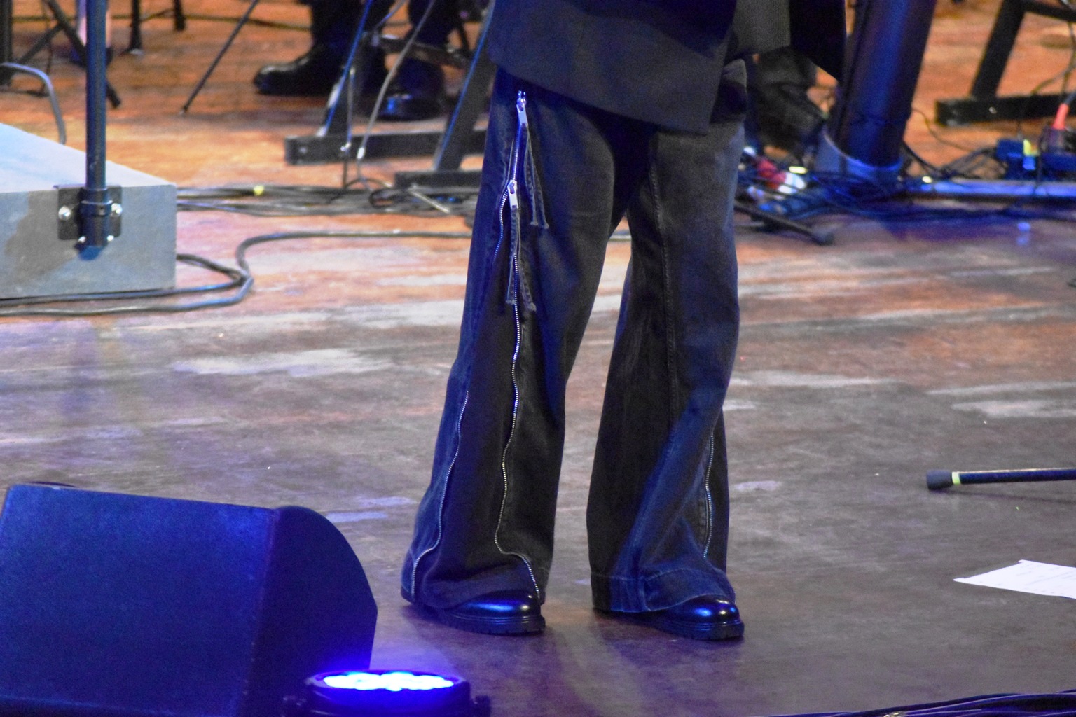 Solistul vocal de la Holograf a venit în fața celor aproximativ 700 de botoșăneni în niște pantaloni exagerat de evazați.