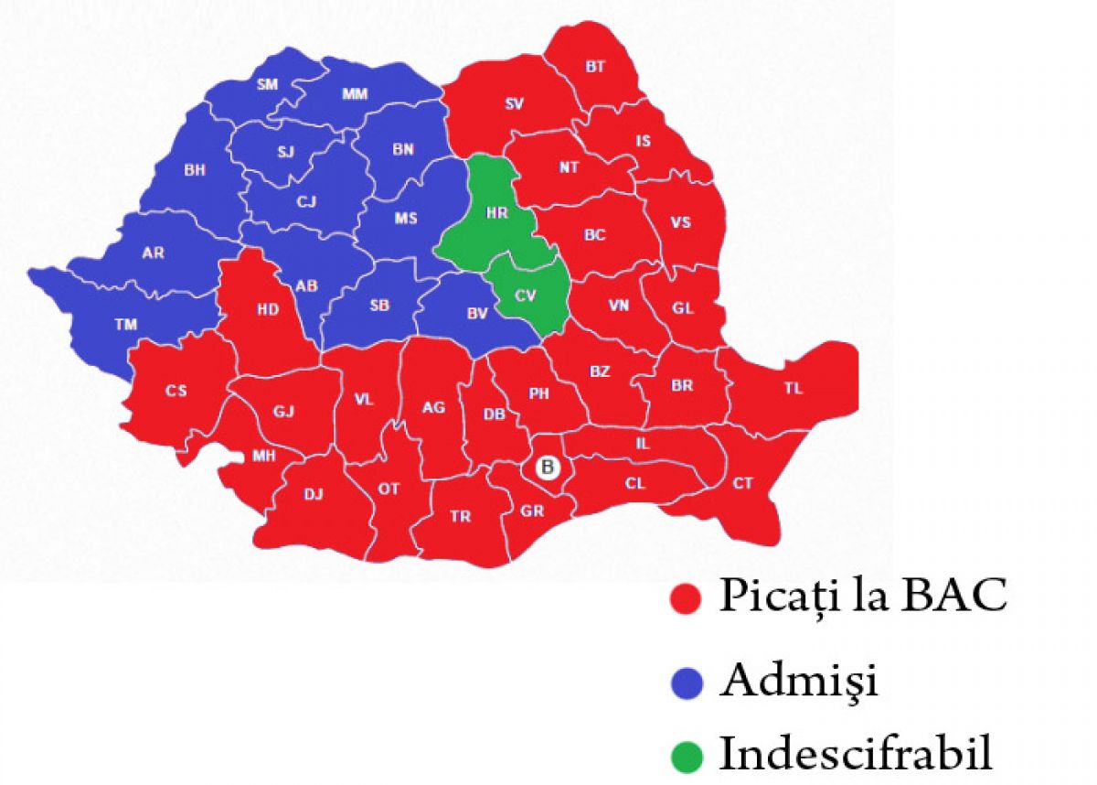 Din aşa părinţi, ce era să iasă? Harta rezultatelor la BAC arată că se suprapune perfect atât pe harta electoratului PSD, precum şi pe harta alcoolismului. Drept dovadă, în Teleorman şi Giurgiu rezultatele erau previzibil de slabe, în timp ce în Ardeal procentul celor care iau BAC-ul e sensibil egal cu cei care resping prin vot partidul corupţiei, PSD.