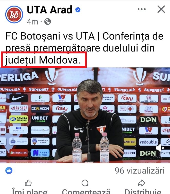 Înaintea confruntării de luni, de pe ”Municipal”, clubul din Arad a organizat o conferință de presă și a postat pe pagina oficială de Facebook un material video cu titlul: ”FC Botoșani vs UTA / Conferința de presă premergătoare duelului din județul Moldova”.