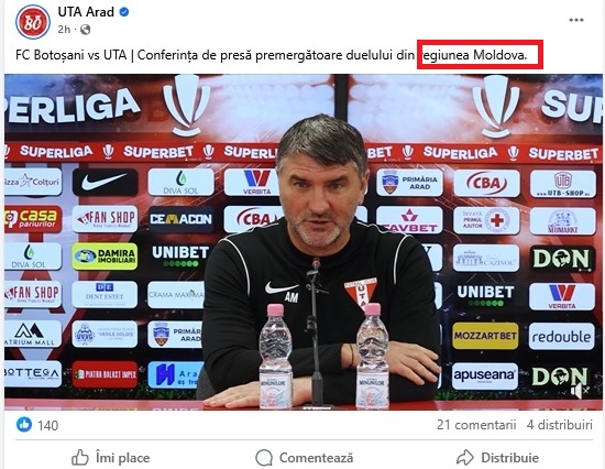 Greșeala a fost sesizată de presa locală și ulterior postarea a fost editată, ”județul Moldova” devenind ”regiunea Moldova”.