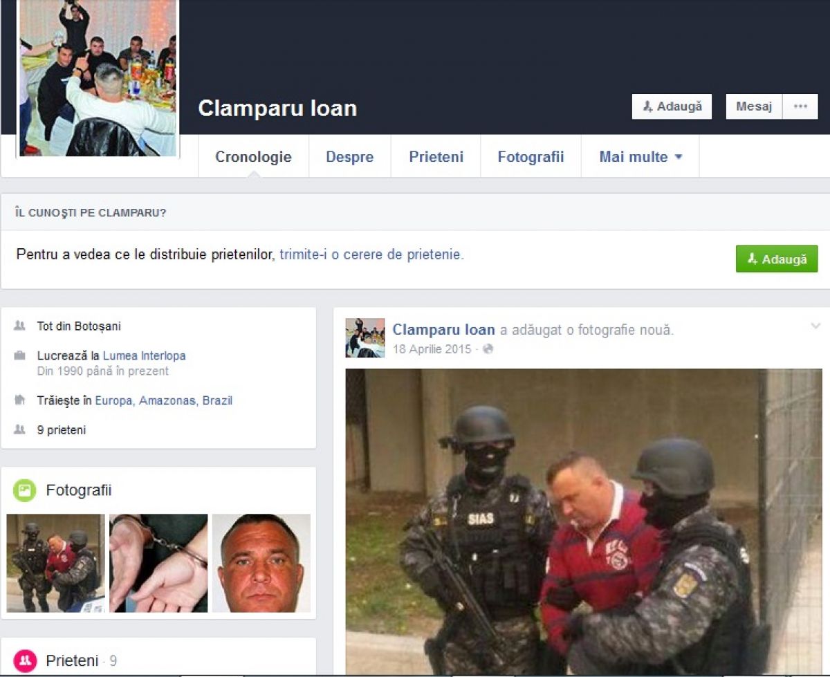 De loc din Botoșani, ”Cap de Porc”, așa cum îi este porecla, are deschise pe rețeaua socială Facebook trei conturi în care a primit mesaje ... nu tocmai plăcute. Nu știm dacă conturile îi aparțin, dar cert este că nu prea a atras simpatia celor care i-au vizitat profilul. Câțiva internauți, care cel mai probabil îi cunosc trecutul tumultos, i-au lăsat o serie de urări cum ar fi, de pildă, ” ai ajuns la răcoare jeg nenorocit ce ești.....acolo să putrezești”, sau ” Mă idiotule ,eşti tare ,mă ?”, ”He´s into prison! I hope you die into prison ( El este în închisoare. Sper să mori în închisoare”, sunt câteva dintre mesajele primite de Ioan Clămparu, cel mai de temut interlop. Presa națională și cea spaniolă scriu că botoșăneanul folosea metode extrem de dure pentru a convinge fetele care veneau din România să se vândă pe bani.