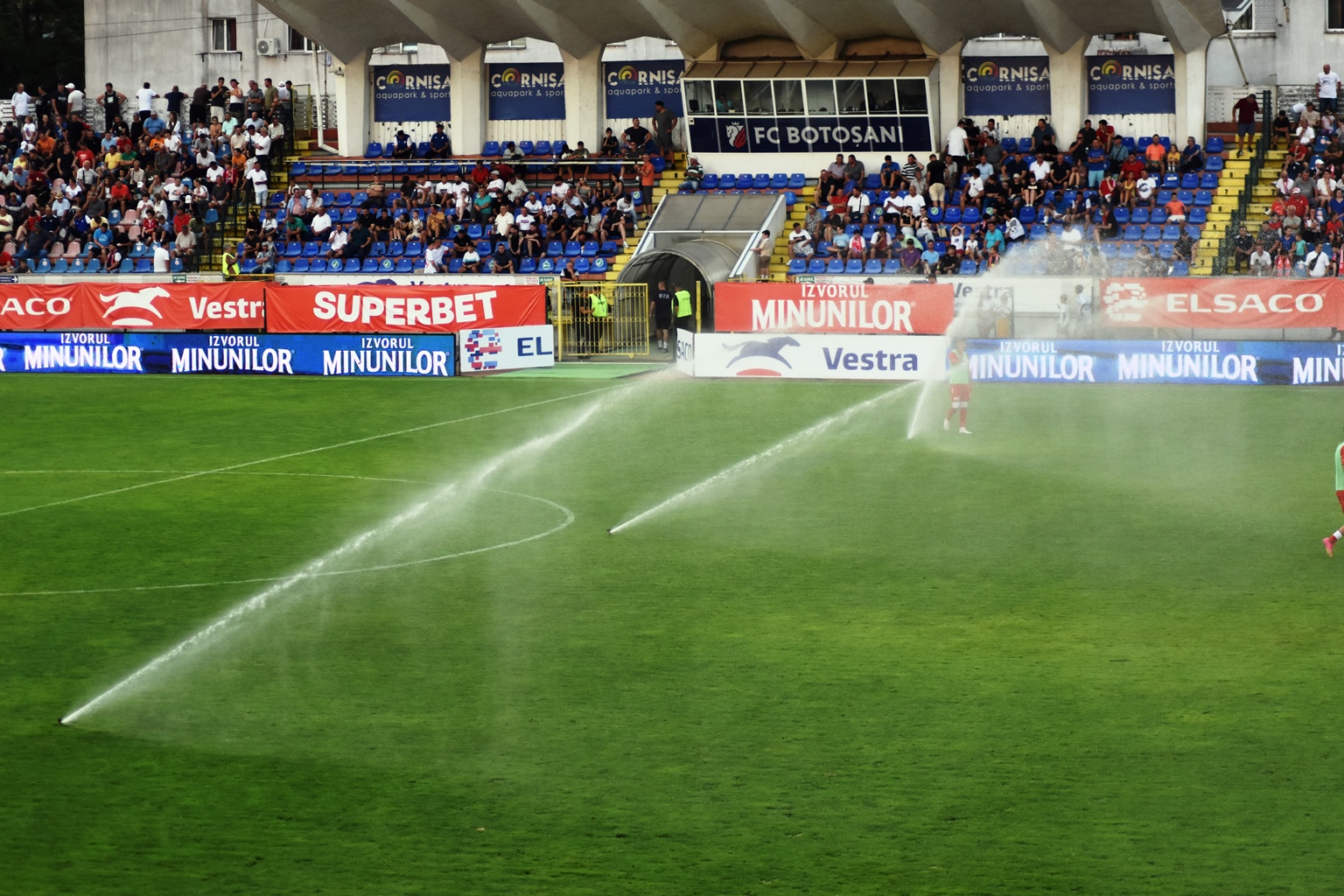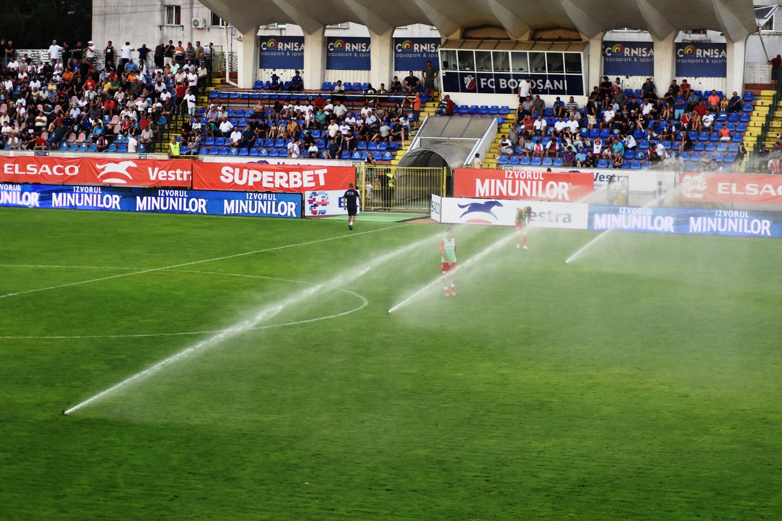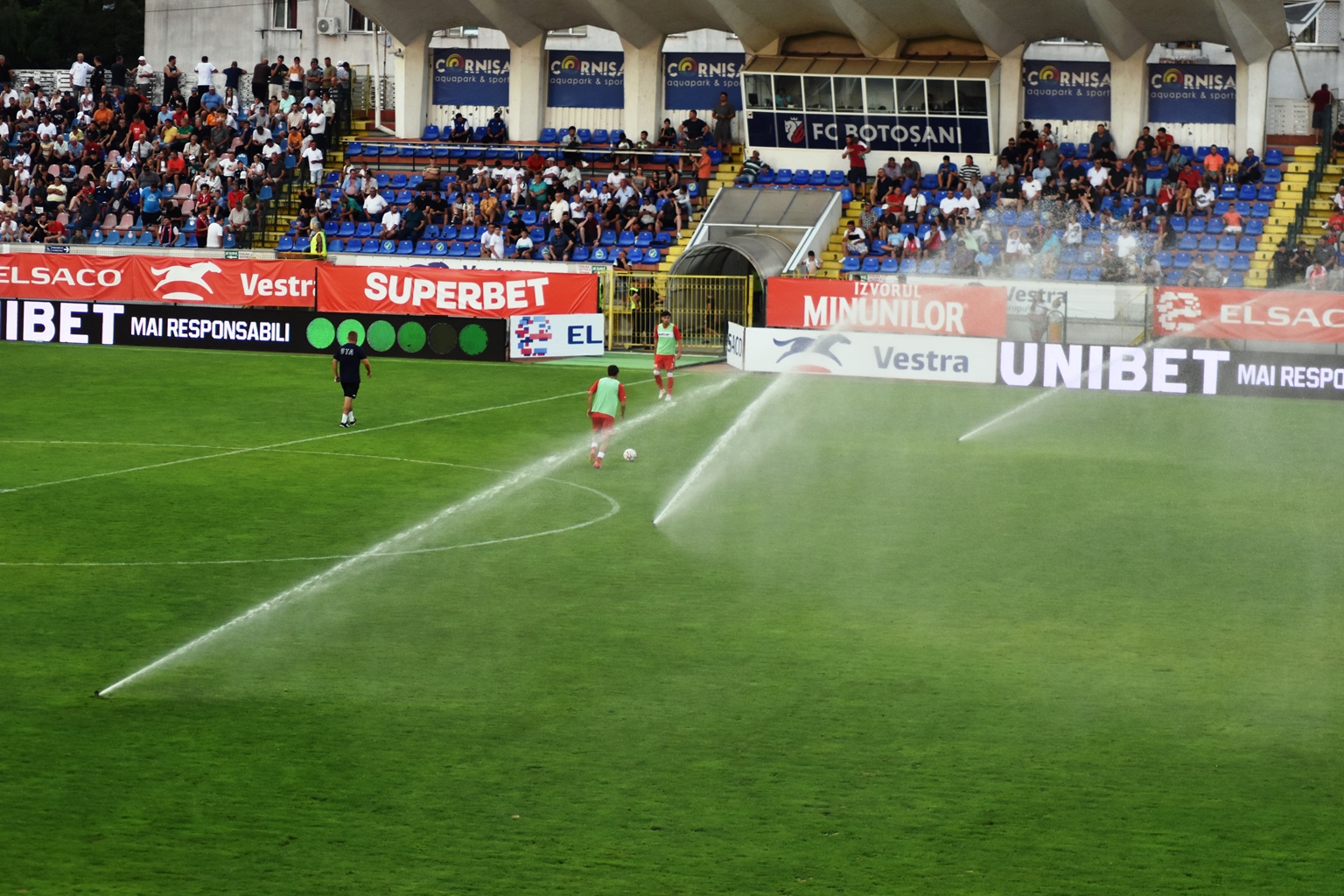 Administratorii stadionului ”Municipal” nu au ținut însă cont de asta și au declanșat aspersoarele.