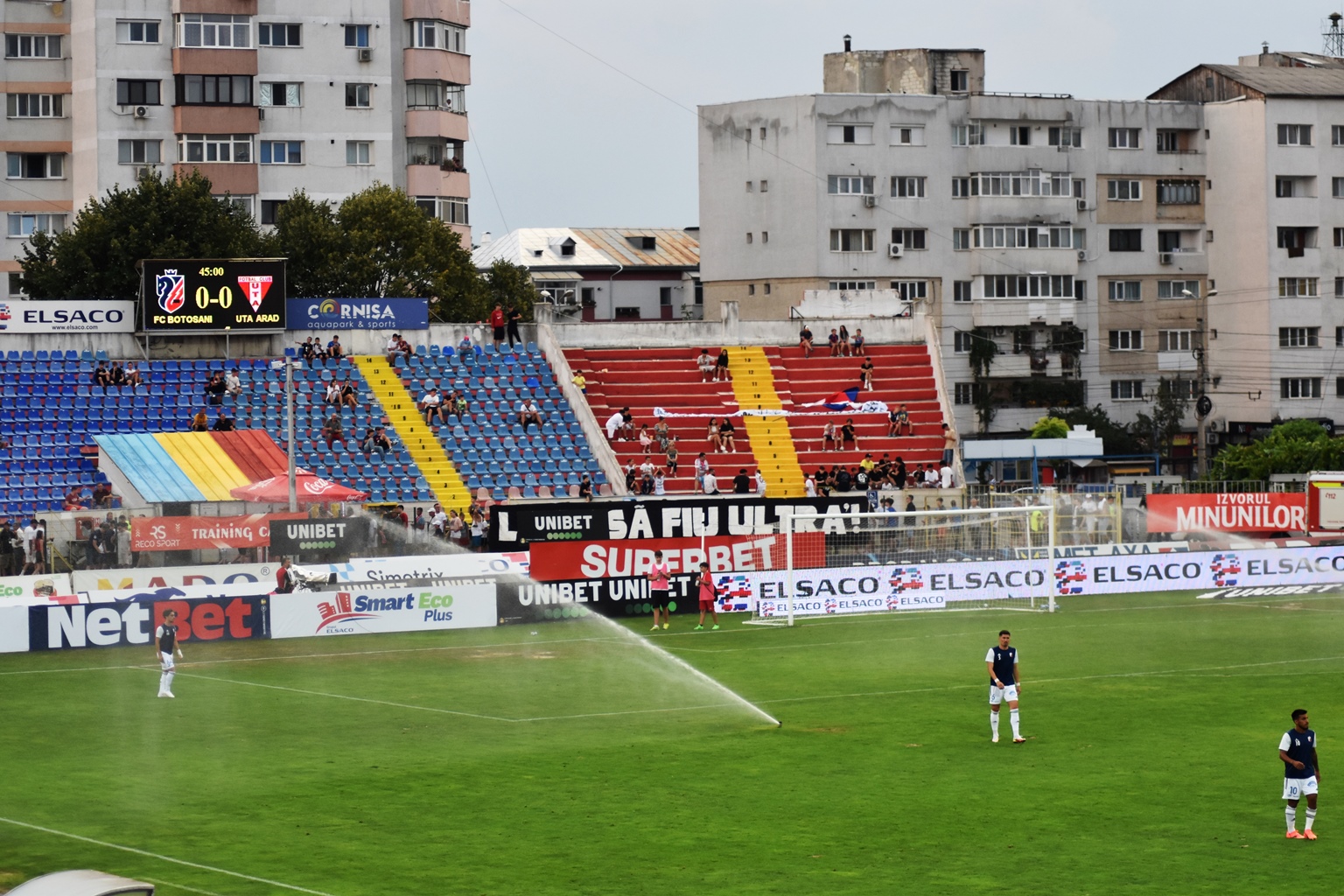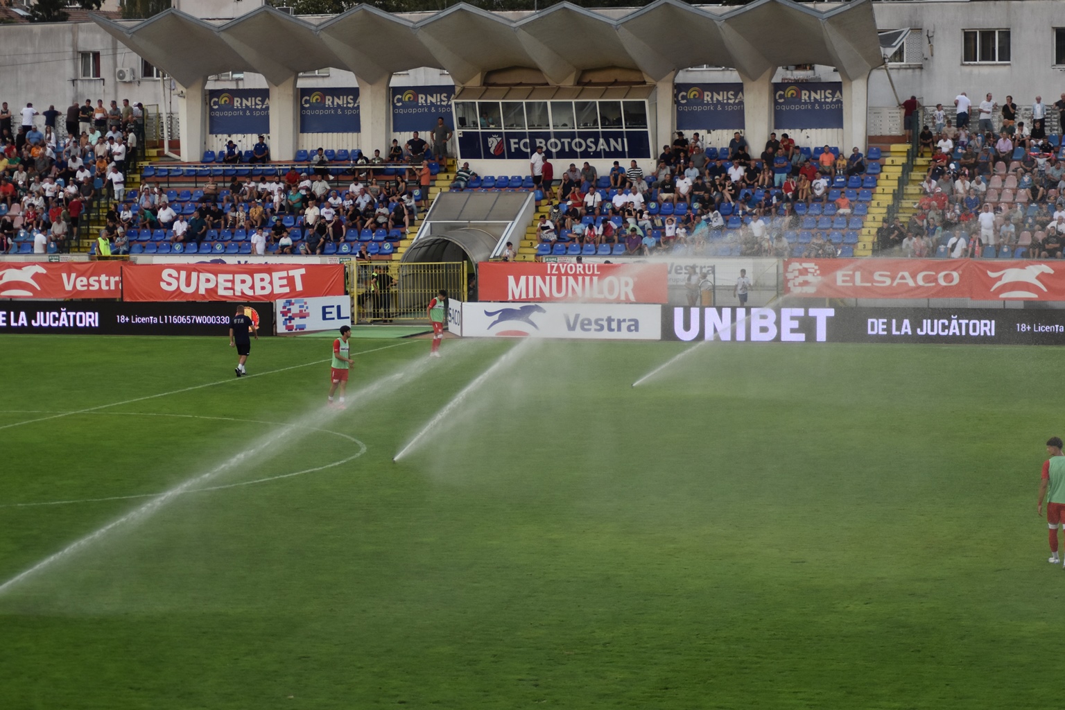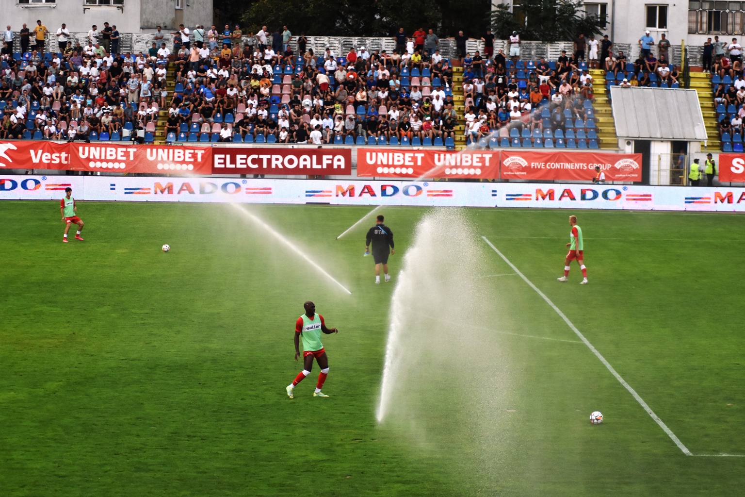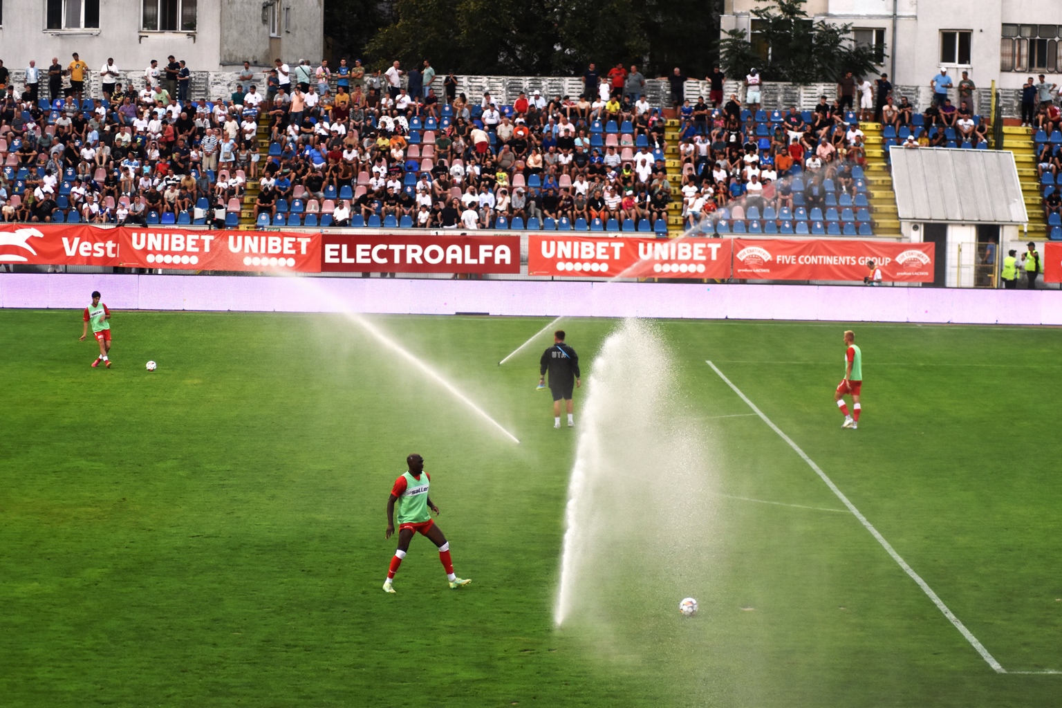 Administratorii stadionului ”Municipal” nu au ținut însă cont de asta și au declanșat aspersoarele.