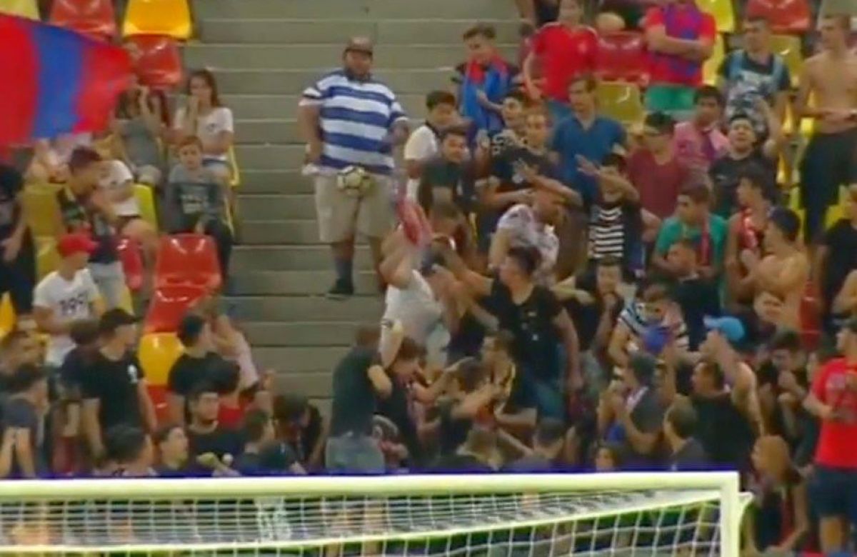 În meciul de pe Arena Națională, Mihai Bordeianu a șutat cu stângul, din poziție centrală, departe de poartă. Execuția a fost însa una foarte puternică, mingea a ajuns în peluză și, după ce nu a putut fi oprită de câțiva suporteri, a ajuns în zona sensibilă a unui fan al roș-albaștrilor.