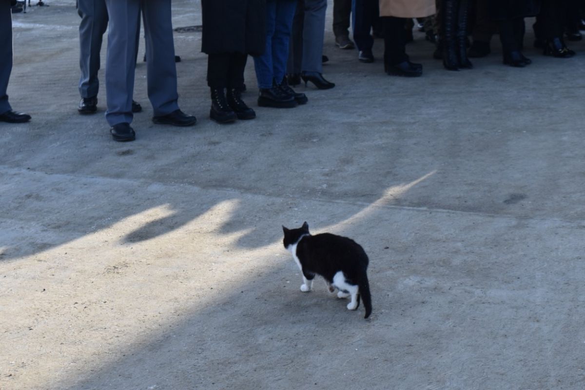 Un pui de pisoi a ajuns în scurt timp printre picioarele celor prezenți fără să afișeze vreo urmă de teamă.